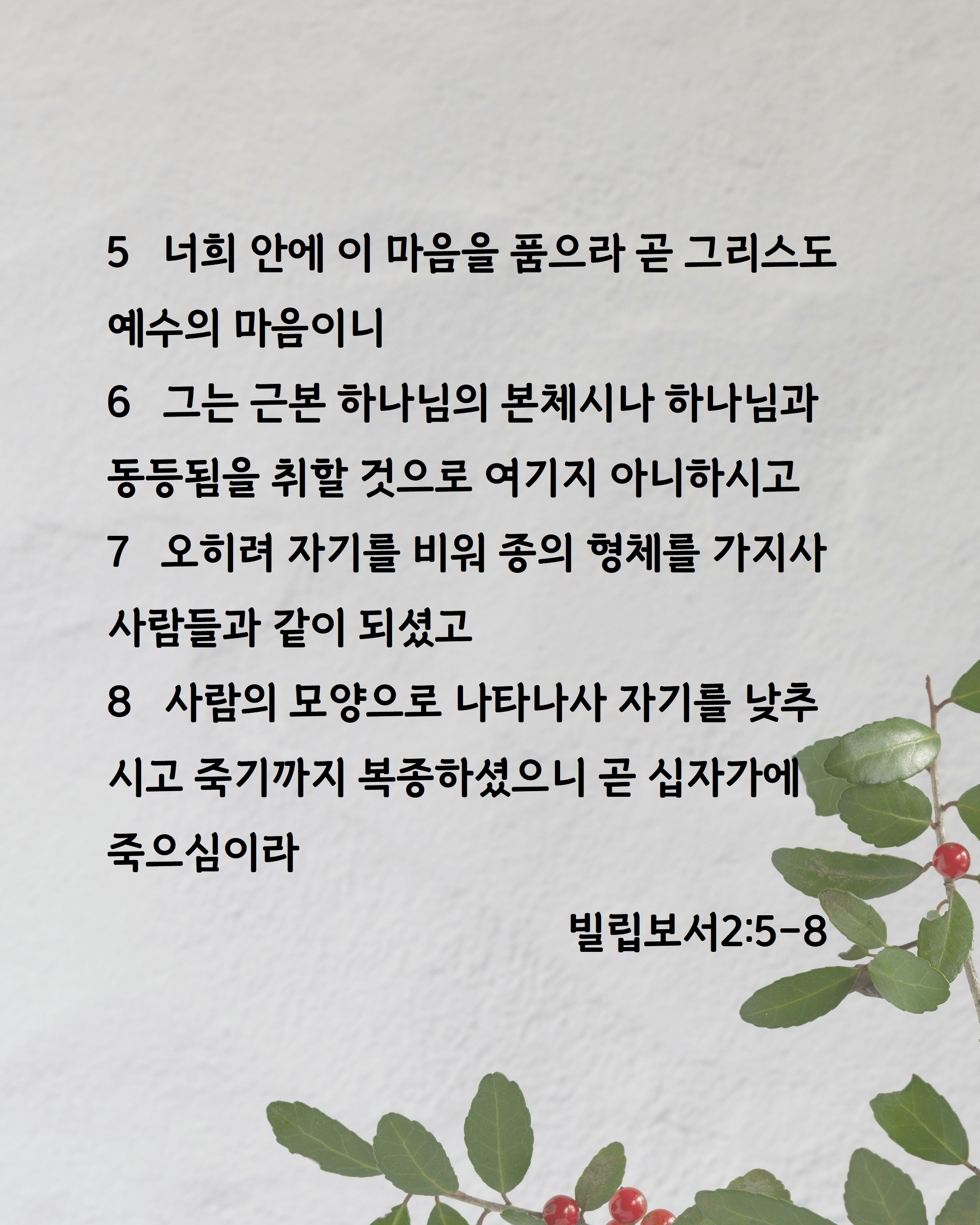 빌립보서 2장 예수께서 자신을 아무것도 아닌 존재로 낮추셨다고 말합니다.