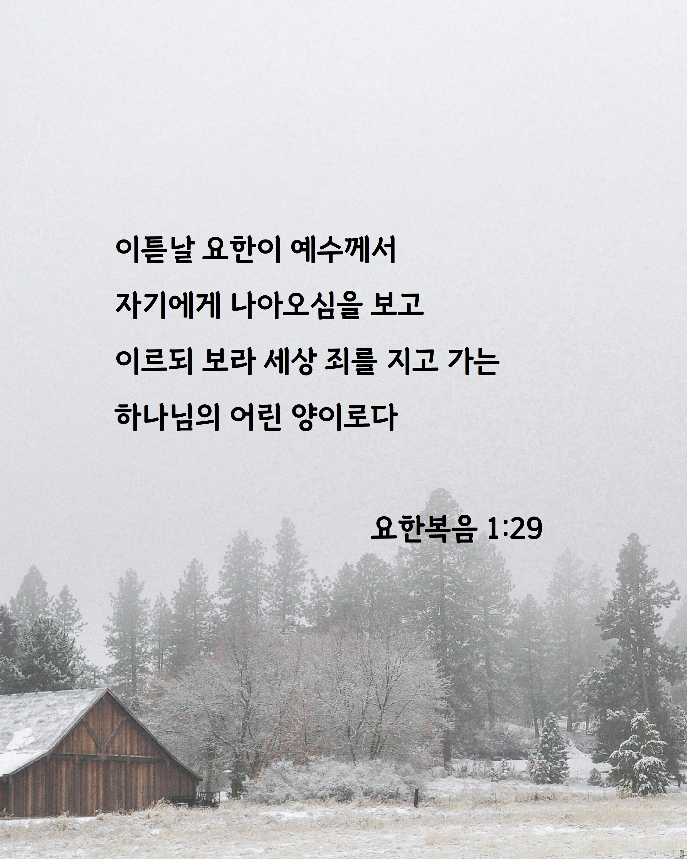 예수님, 제 죄를 씻기 위해 오신 어린 양 되심에 감사합니다. 주를 바라보며 제 마음이 감사와 경외함으로 가득 차게 하소서. 아멘