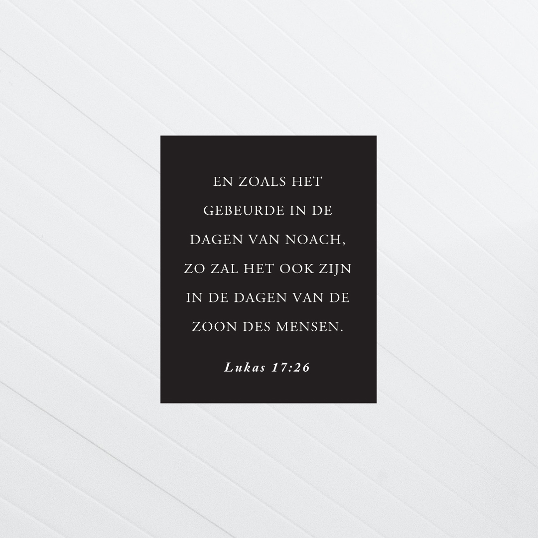 En zoals het gebeurde in de dagen van Noach, zo zal het ook zijn in de dagen van de Zoon des mensen. Zij aten, zij dronken, zij namen ten huwelijk en zij werden ten huwelijk gegeven tot op de dag waarop Noach de ark binnenging en de zondvloed kwam en hen allen om deed komen.