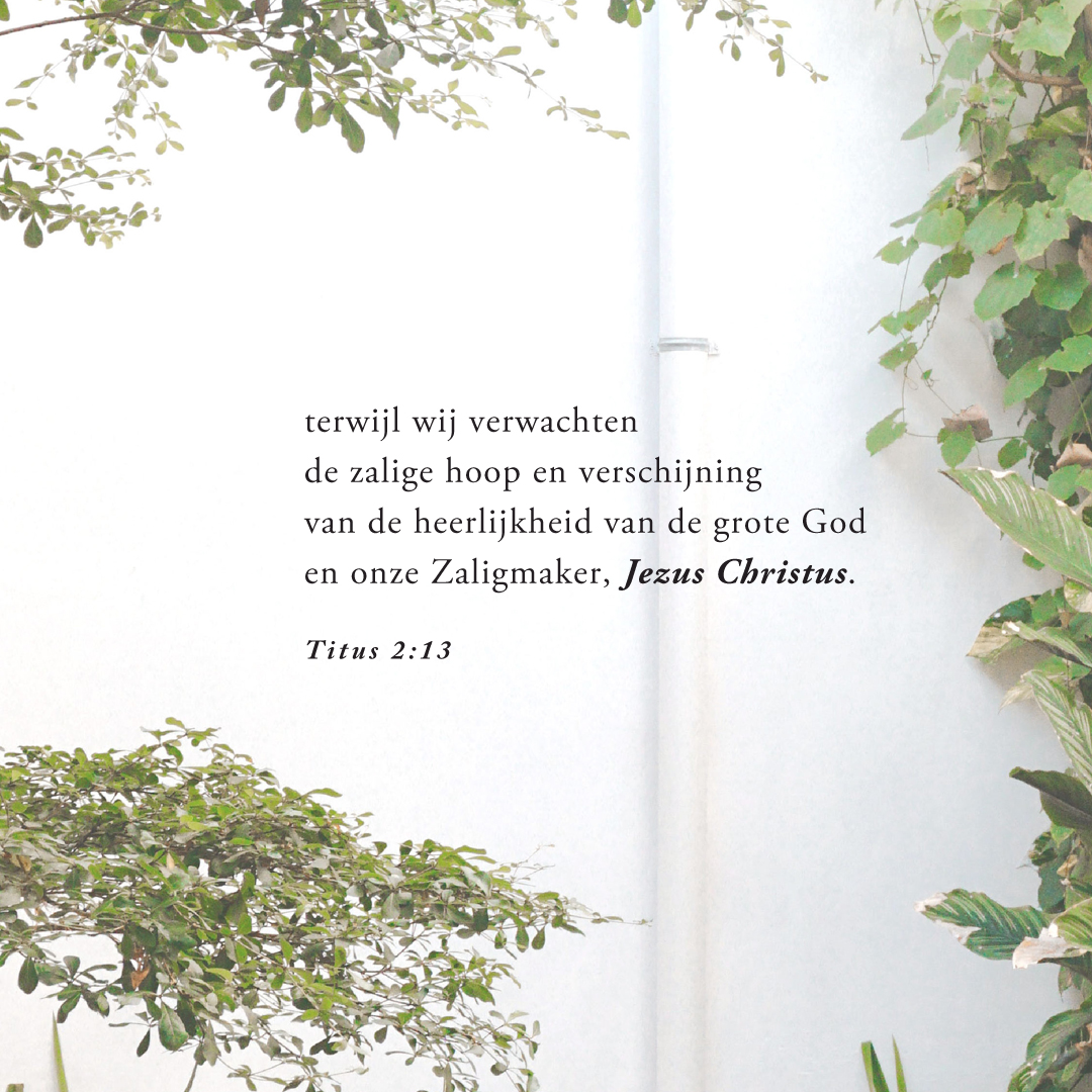 Want de zaligmakende genade van God is verschenen aan alle mensen, en leert ons de goddeloosheid en de wereldse begeerten te verloochenen en in deze tegenwoordige wereld bezonnen, rechtvaardig en godvruchtig te leven, terwijl wij verwachten de zalige hoop en verschijning van de heerlijkheid van de grote God en onze Zaligmaker, Jezus Christus.