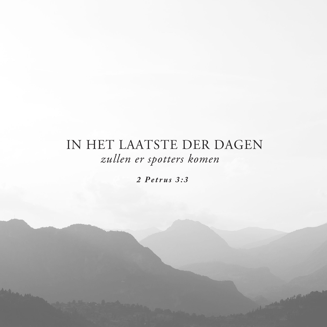 Dit moet u allereerst weten, dat er in het laatste der dagen spotters zullen komen, die naar hun eigen begeerten zullen wandelen en zeggen: Waar is de belofte van Zijn komst? Want vanaf de dag dat de vaderen ontslapen zijn, blijven alle dingen zoals vanaf het begin van de schepping.