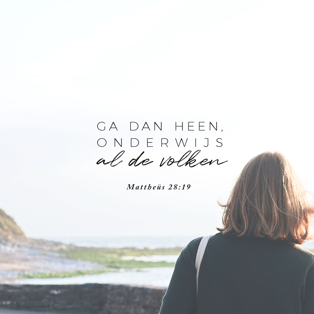 Ga dan heen, onderwijs al de volken, hen dopend in de Naam van de Vader en van de Zoon en van de Heilige Geest, hun lerend alles wat Ik u geboden heb, in acht te nemen. En zie, Ik ben met u al de dagen, tot de voleinding van de wereld.