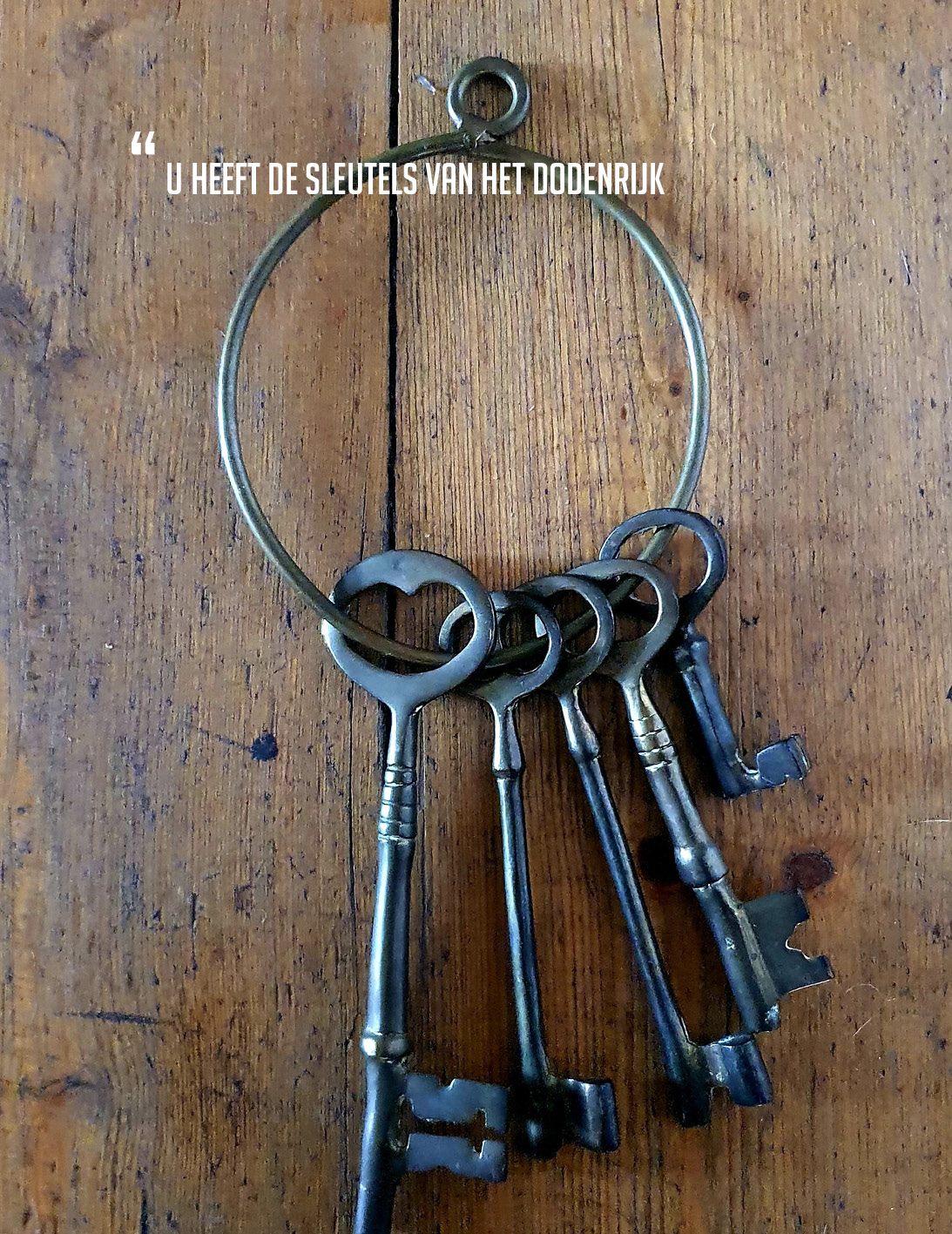 "En Ik heb de sleutels van het rijk van de dood en van de dood zelf" (HSV).