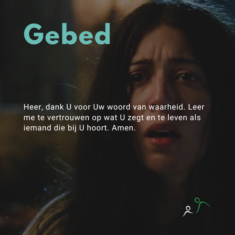 Heer, dank U voor Uw woord van waarheid. Leer me te vertrouwen op wat U zegt en te leven als iemand die bij U hoort. Amen.
