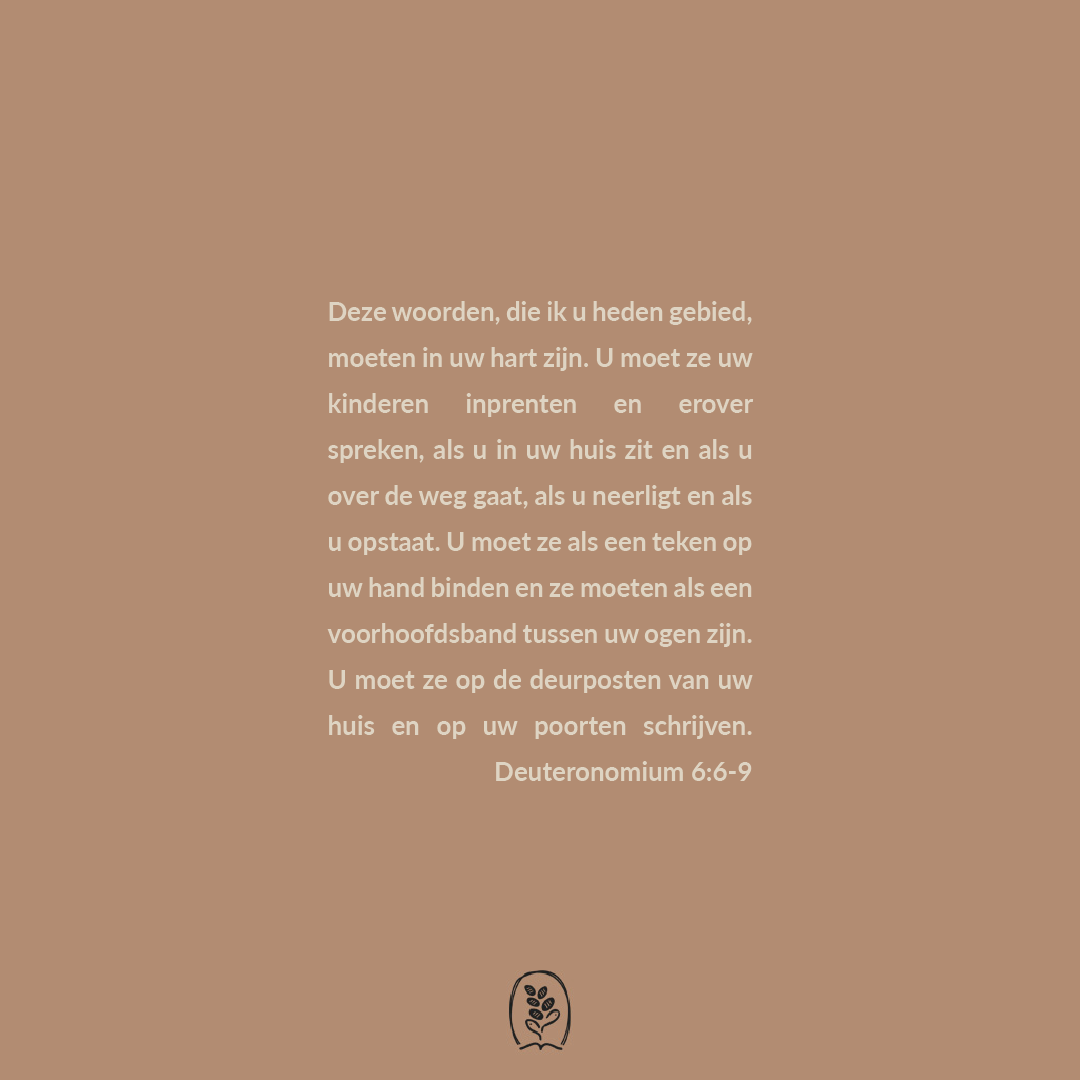 “U moet ze uw kinderen inprenten en erover spreken, als u in uw huis zit en als u over de weg gaat, als u neerligt en als u opstaat” (Deuteronomium 6:7, HSV).