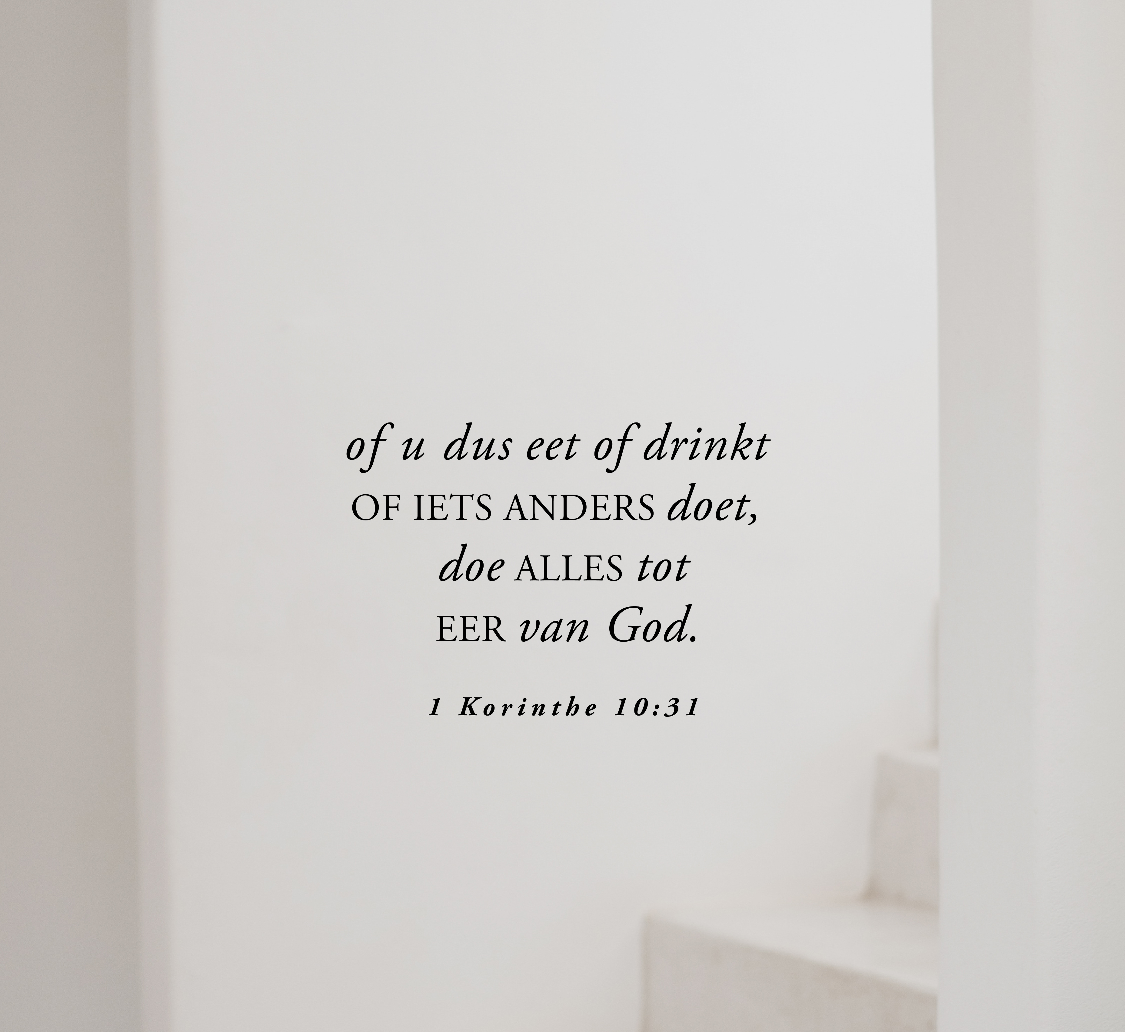 Lieve zus, denk eens even na over wat je vandaag gedacht en gedaan hebt. Waar draaide het om: om jezelf, om je kinderen, je to-do lijstje, je financiën, enz.? Probeer je voor te stellen dat je dagen uitsluitend op God gericht zouden zijn. Dat klinkt nogal idealistisch, nietwaar? Toch kan het. Oké, bedenken en doen wat nodig is voor je gezin is absoluut belangrijk. Maar de ware motivatie waar je voor leeft is voor een Christen om lof en eer aan God te brengen, door je leven echt aan Hem toe te wijden. 1 Korinthe 10:31 moedigt ons aan om dat te doen. Dat vers gaat niet alleen over de grote momenten in je leven, maar ook over de kleine. Het gaat over ons alledaagse gedrag, over hoe we van alledaagse bezigheden een bijzonder eerbetoon aan God kunnen maken.
