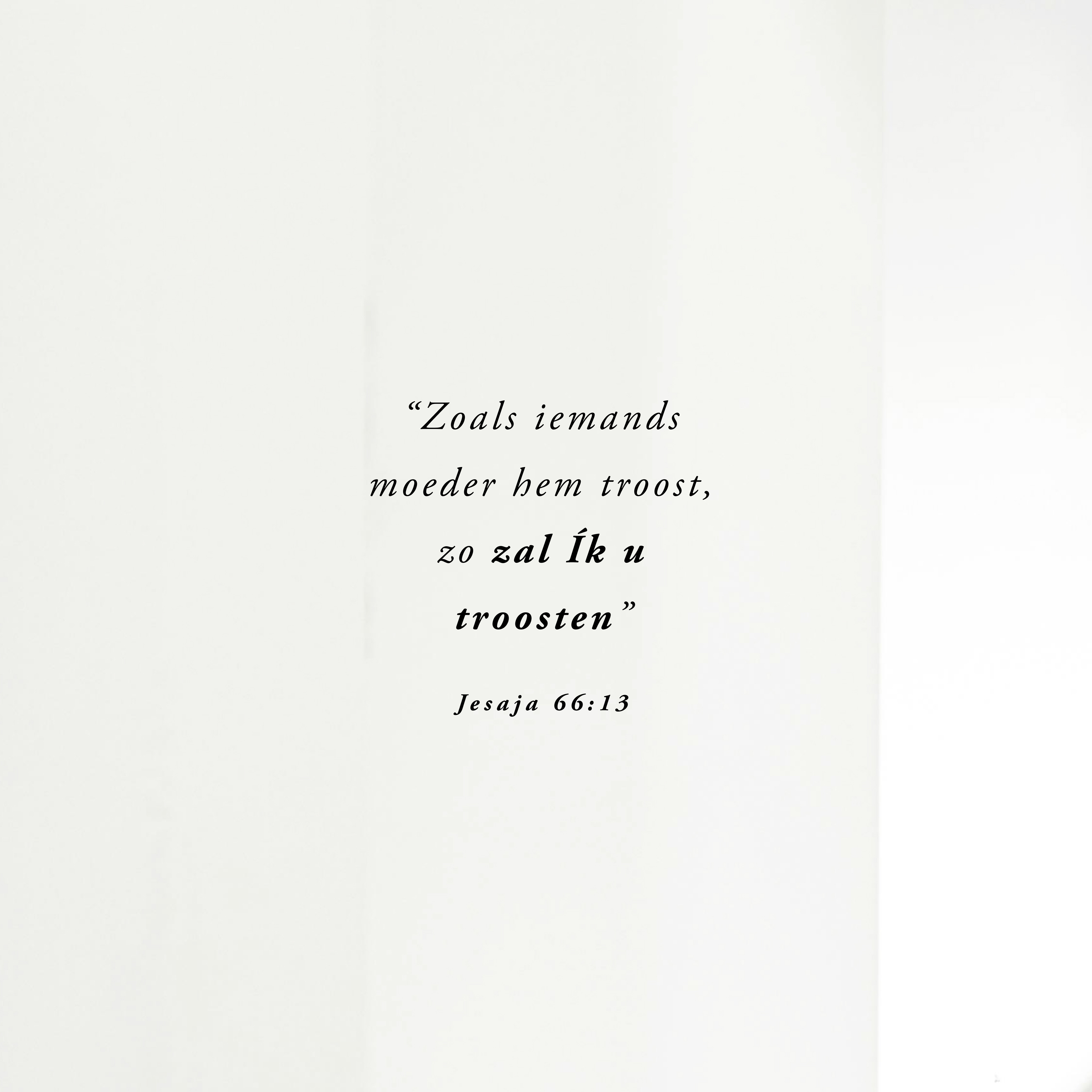 En als jij jezelf soms wel eens onbekwaam of overstelpt voelt, geef je dan over aan de troost die God je geeft. Net zoals jij je kind troost, troost Hij jou. Laat je door Hem vervullen zodat jij diezelfde troost weer aan je kinderen kunt doorgeven. Troosten doe je niet uit eigen kracht, je bent een kanaal waardoor God zijn troost kan laten stromen.