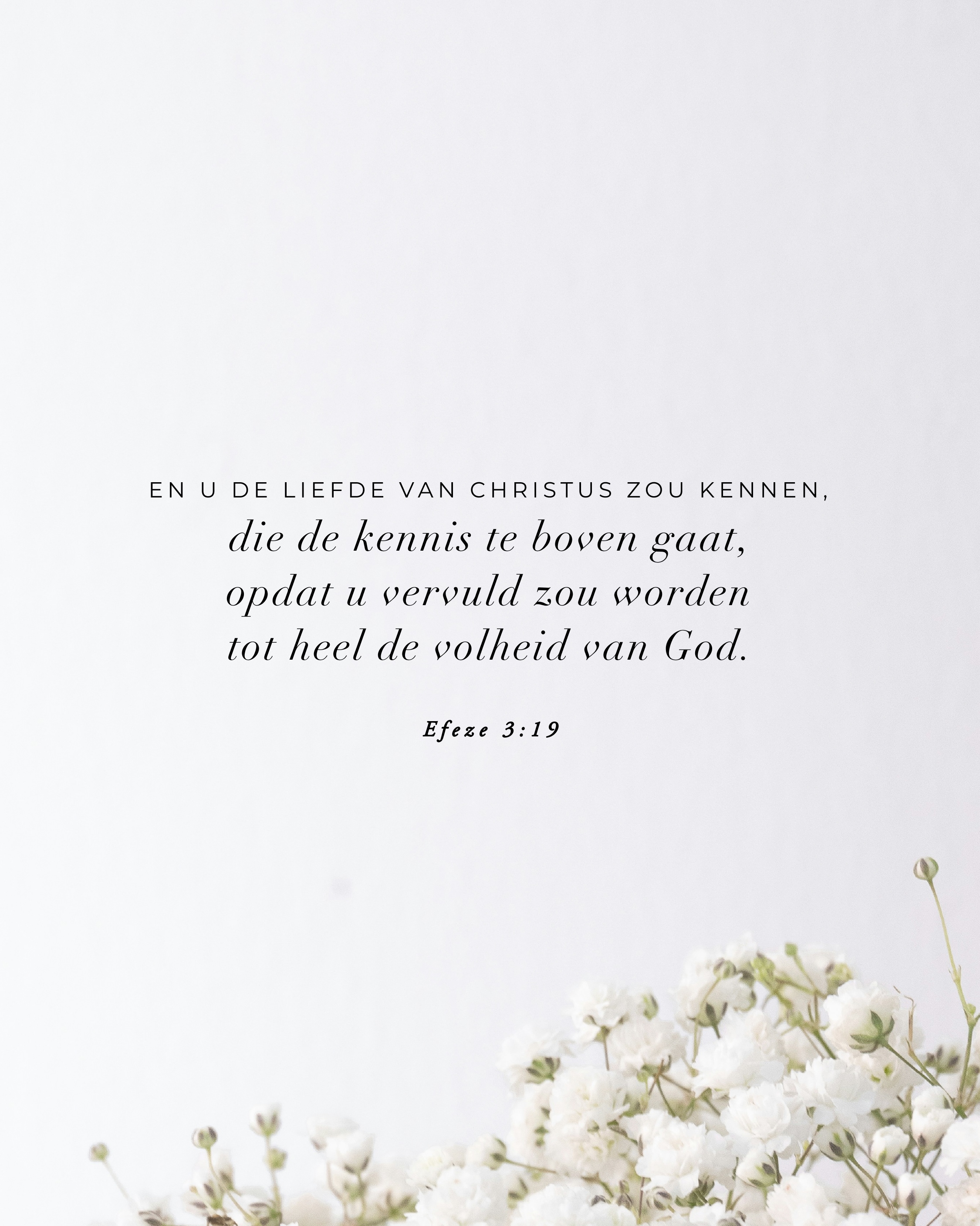 Heer Jezus, Uw liefde is groter dan ik kan begrijpen. Help mij om Uw liefde steeds beter te leren kennen en laat mij die liefde elke dag ervaren. Amen.
