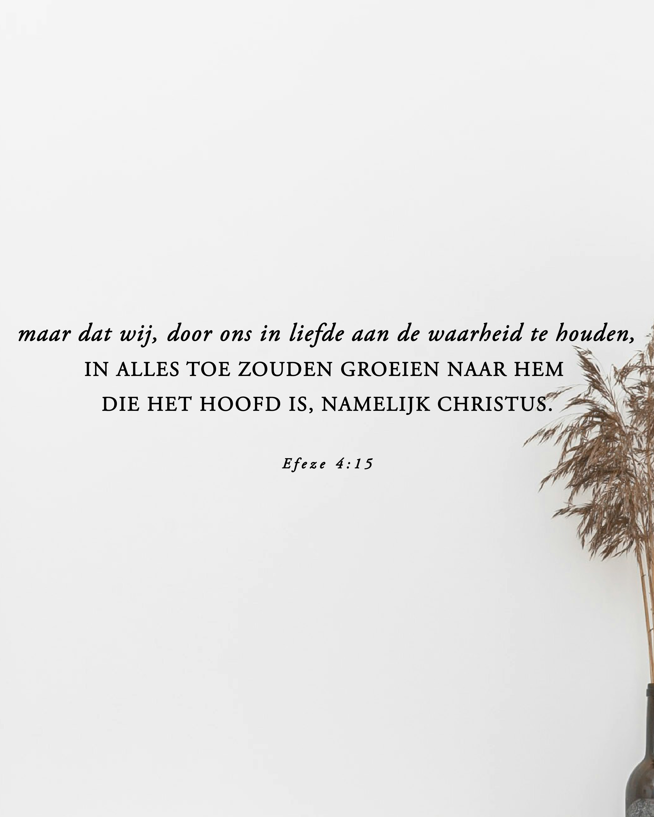 Dat doen we door steeds de waarheid te vertellen over Jezus, over wat Hij heeft gezegd en gedaan en tegelijk ook door elkaar te bemoedigen en te waarschuwen. Spreken vanuit deze waarheid is een grote liefdesdaad, want zo help je elkaar om als christenen volwassen te worden.