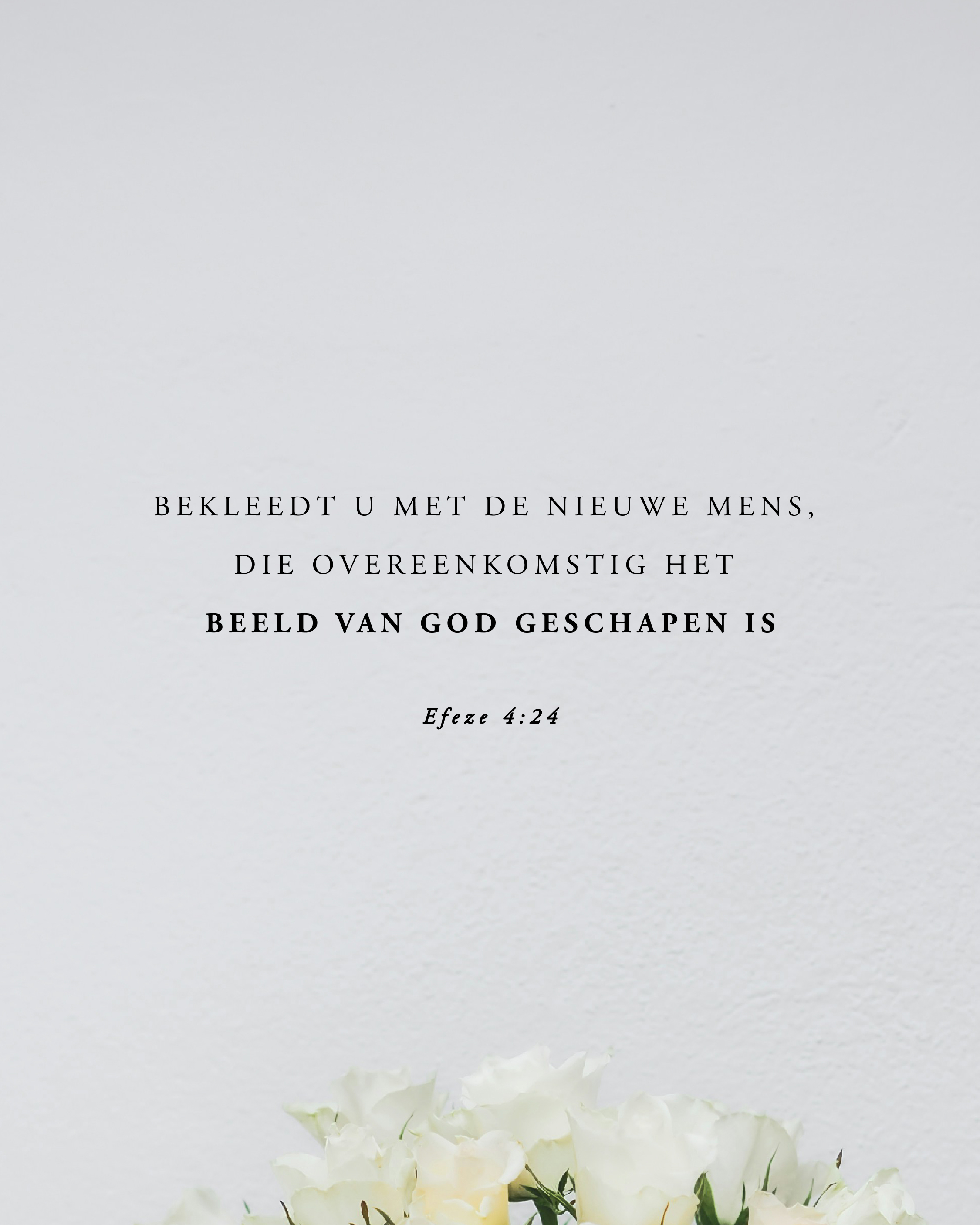 Als jij je vertrouwen op Jezus hebt gesteld, is dit ook jouw verhaal. Jij bent nieuw gemaakt. Er is geen plaats meer voor je oude levenswijze, want je bent nu in Christus. Elke dag moet je je nieuwe mens aandoen, dat wil zeggen dat je je realiseert wie je bent in Christus. Je kiest er nu elke dag voor om zo te leven dat Hij erdoor geëerd wordt, door middel van Zijn Woord, je gebeden en door de kracht van de Heilige Geest.