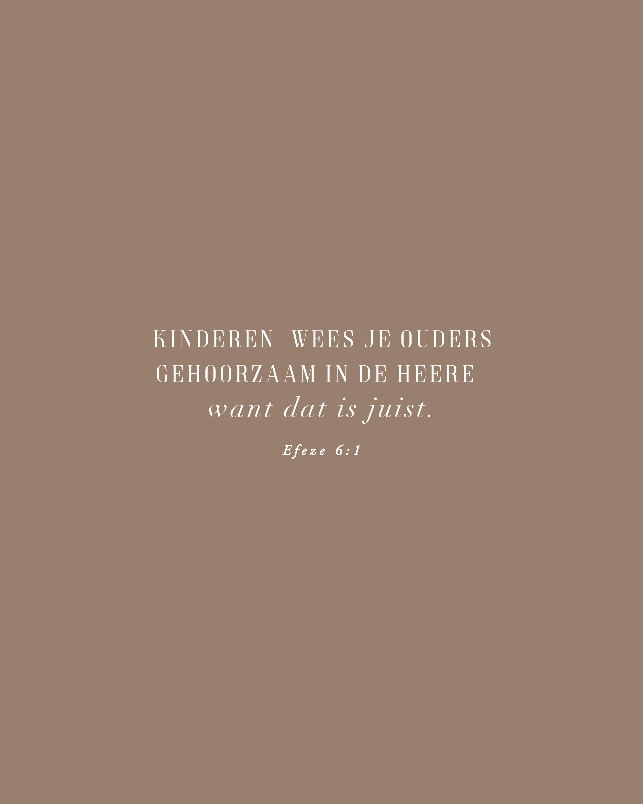 Net zoals de gelovigen worden opgeroepen om God onze Vader te gehoorzamen, worden kinderen opgeroepen om hun ouders te gehoorzamen. Dit gebod was al eerder gegeven in de Tien Geboden (Exodus 20:12). Je ouders eren betekent dat je hen respecteert, gehoorzaamt en hun dankbaar bent. Zij doen hun best om hun kinderen liefde en leiding te geven en ze zo op te voeden dat ze tot bloei kunnen komen.
