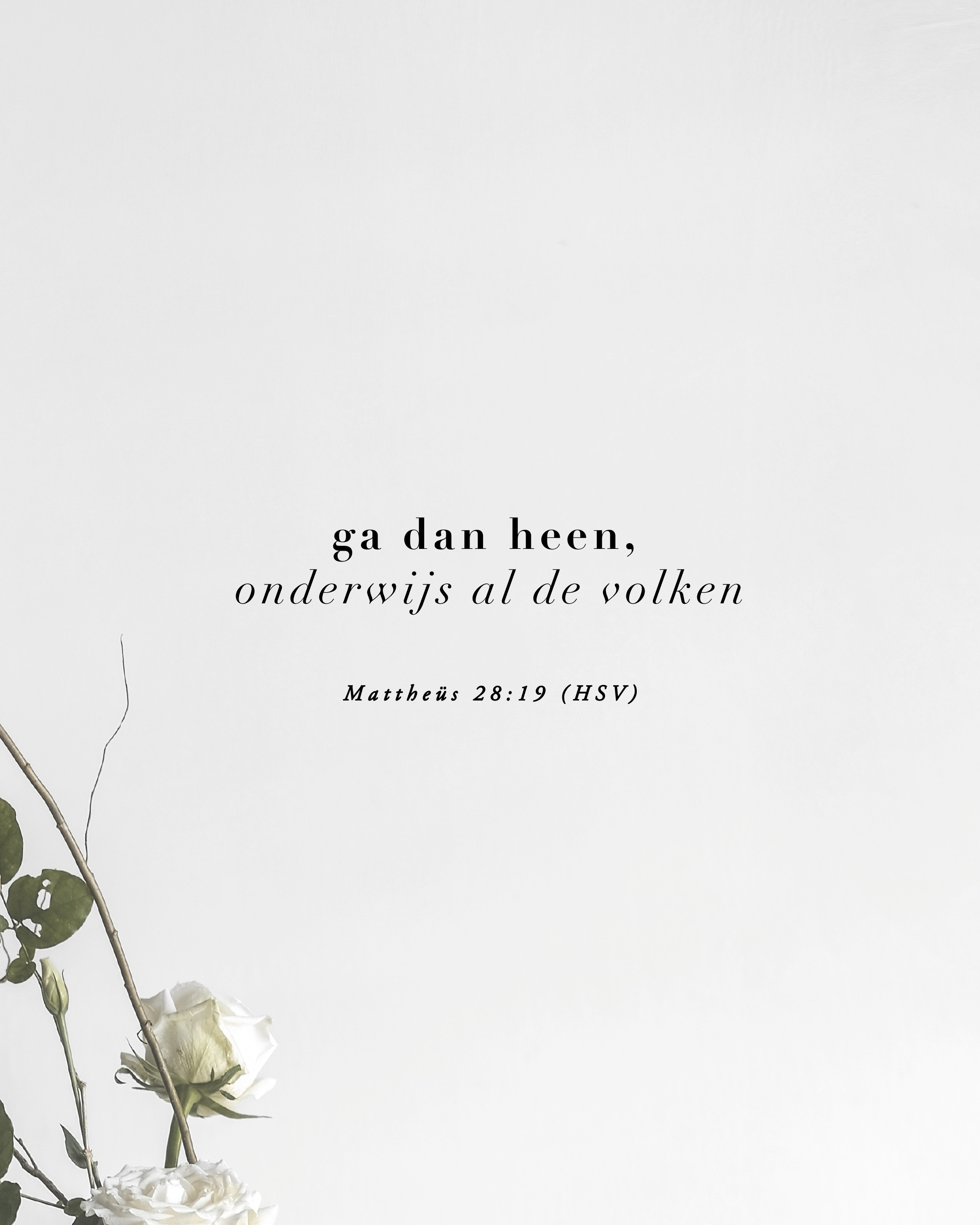 Aan het einde van Mattheüs geeft Jezus de Grote Opdracht, waarin staat dat gelovigen de hele wereld in moeten gaan, het evangelie moeten verkondigen, mensen moeten dopen en discipelen moeten maken. Jezus is met ons als we op pad gaan. Dit gebod is niet vrijblijvend; het is de bedoeling dat we allemaal gehoorzamen.
