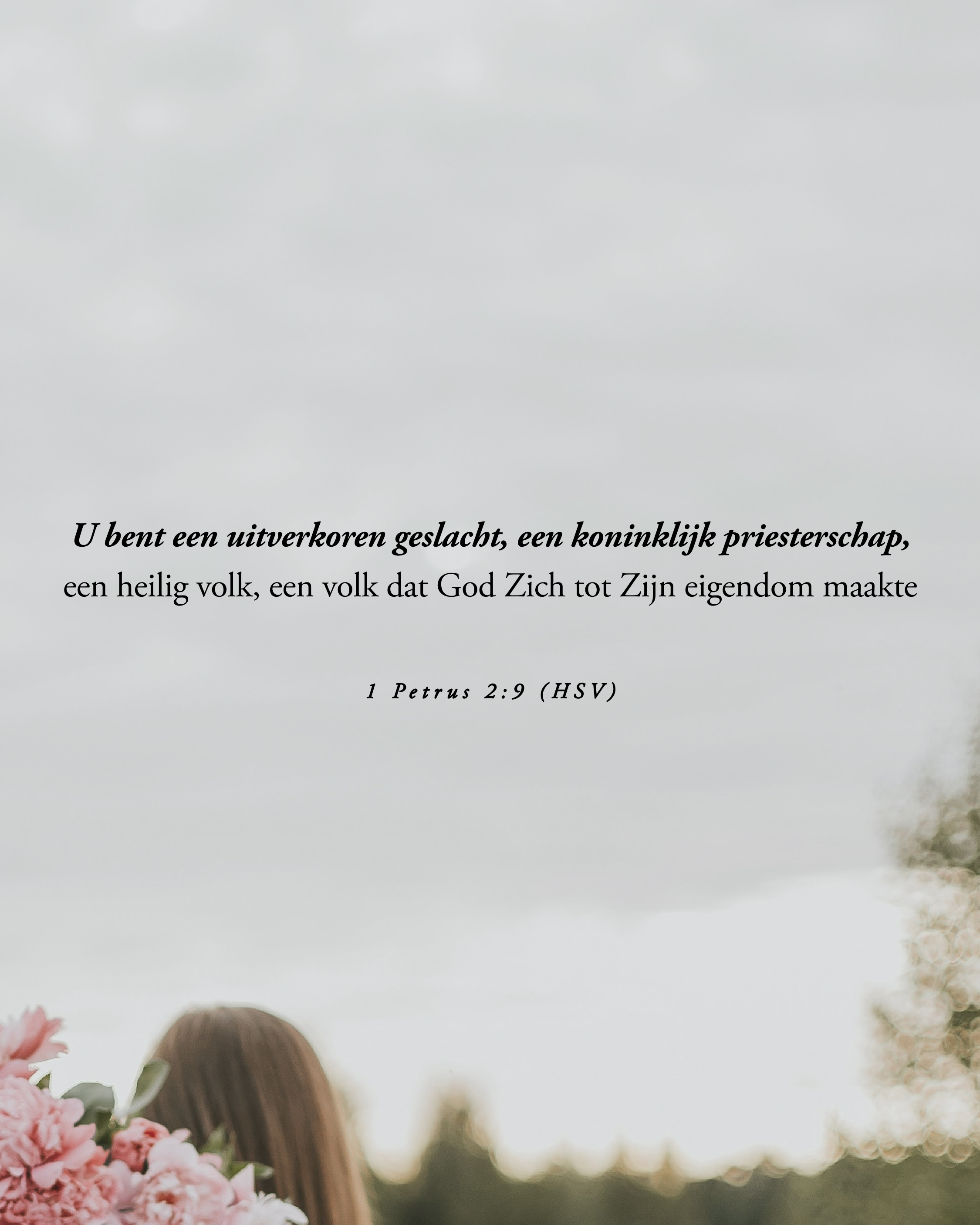 Naarmate we groeien in onze liefde voor Jezus, zullen we groeien in heiliging. Petrus herinnert ons eraan dat we een uitverkoren volk zijn dat gered is uit de duisternis en in het licht is gebracht. We dienen de Koning der koningen en Heer der heren die elke dag bij ons is.