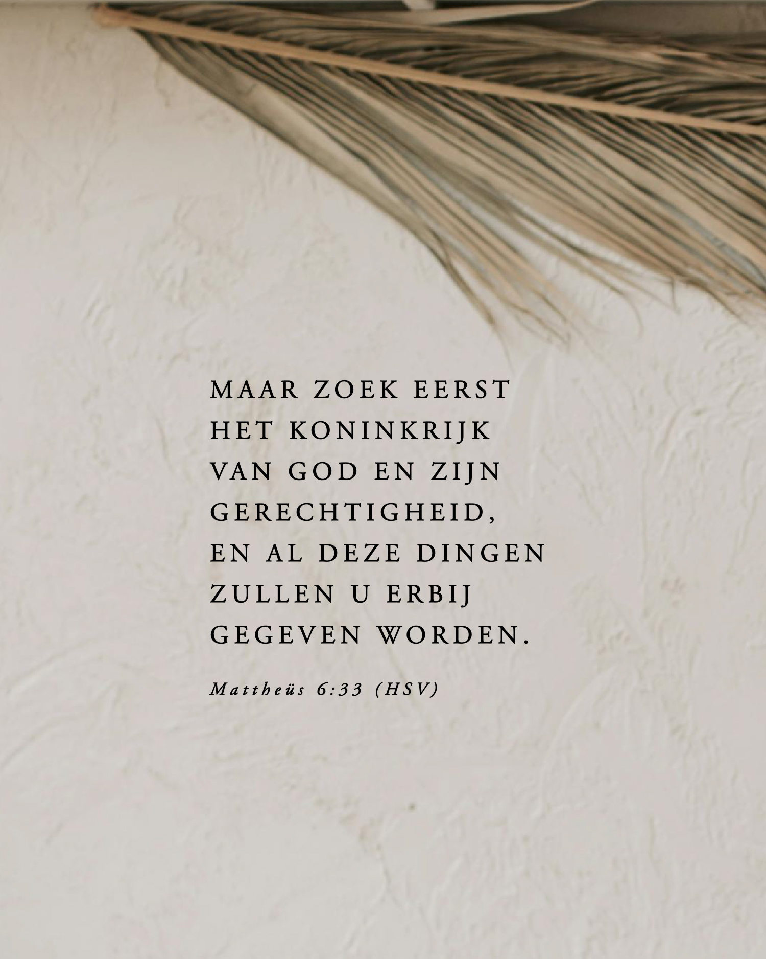 “Maar zoek eerst het Koninkrijk van God en Zijn gerechtigheid, en al deze dingen zullen u erbij gegeven worden.” (HSV)