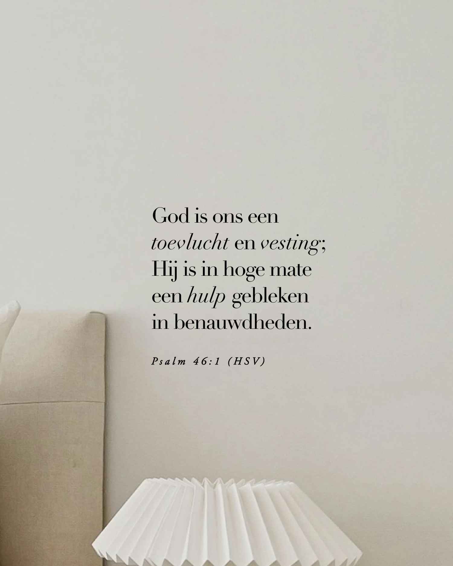 “God is ons een toevlucht en vesting; Hij is in hoge mate een hulp gebleken in benauwdheden.” (HSV)