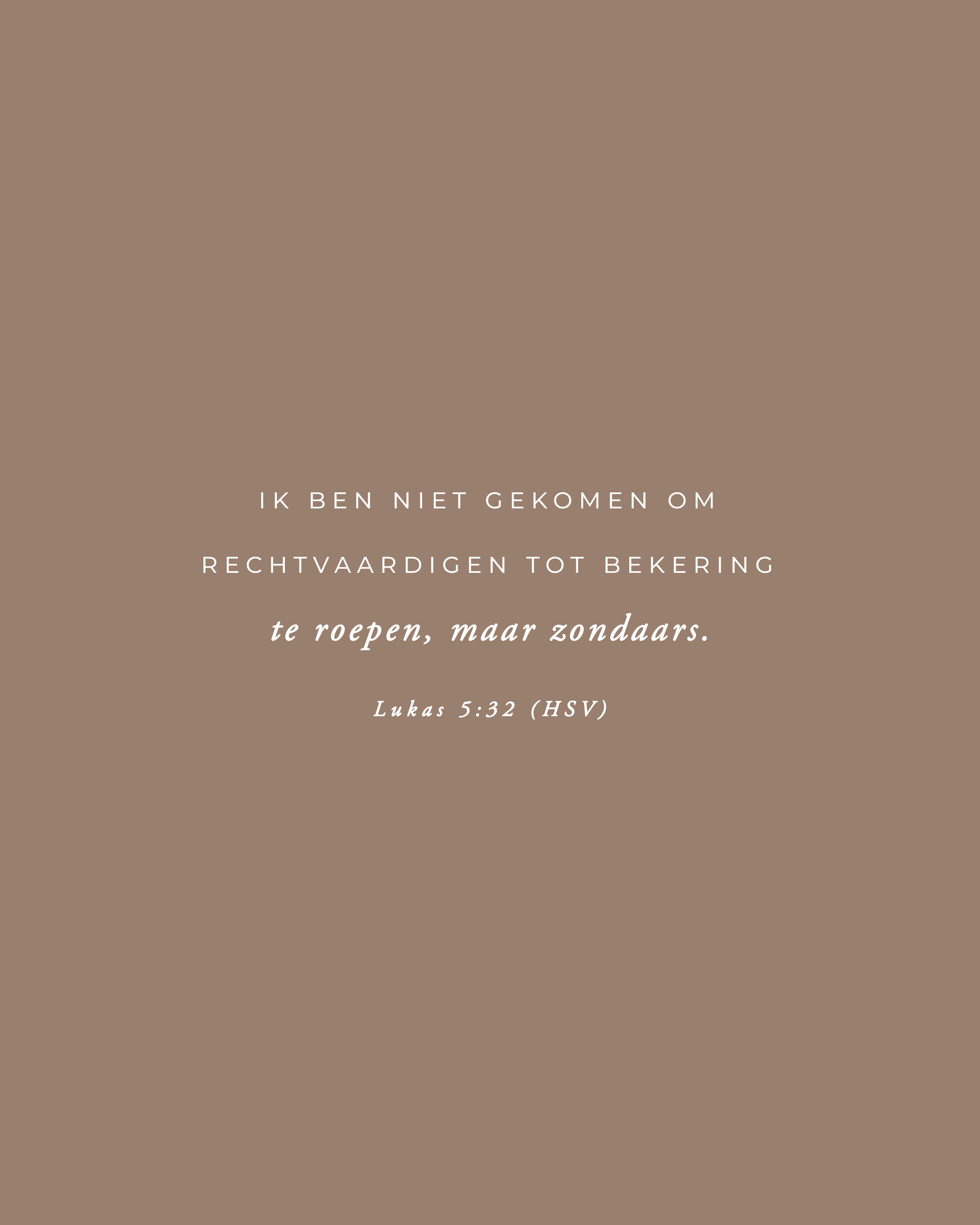 Heer, dank U wel dat U niet wegkijkt van levens die kapot zijn, maar dat U daar binnenkomt met een hart vol mededogen. Help mij dat ik nooit vergeet hoe hard ik U nodig heb. Amen.