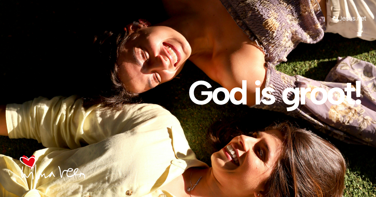 Reuzen lijken groter, hoe langer je naar ze kijkt. Draai je kijken om: lees, spreek en bid Gods beloften hardop. Schrijf ze op een kaartje en draag ze mee in je tas of plak ze op je spiegel. Kies bijvoorbeeld: