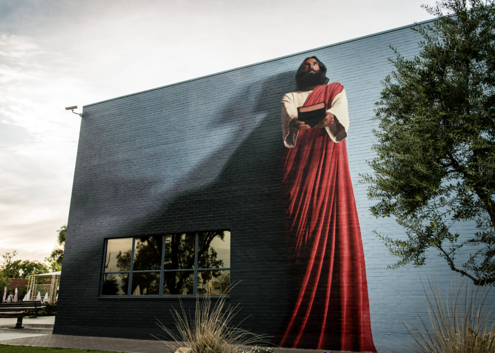 The Word (The Jesus Mural), Kent Twitchell, 1990. Acrylic on parachute cloth, 30 x 50 ft.