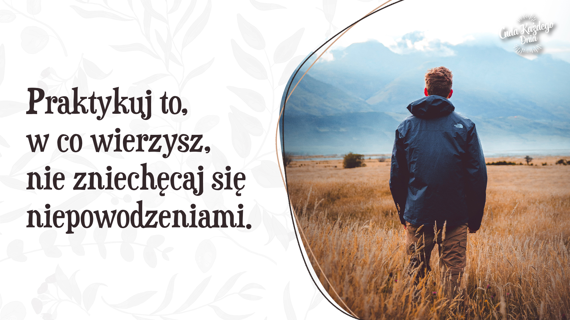 Praktykuj to, w co wierzysz, nie zniechęcaj się niepowodzeniami. Włóż w to całe swoje serce, czas i energię i nigdy się nie poddawaj. Bo tylko dla tych, którzy wprowadzają w czyn Boże Słowo, są wspaniałe obietnice Bożego błogosławieństwa i szeroko otwarte drzwi do Jego Królestwa.
