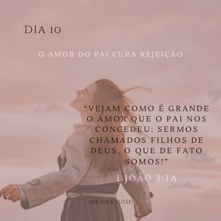 Pai, obrigada porque o teu amor cura toda rejeição no meu coração. Onde ouvi mentiras dizendo que eu não era suficiente, hoje eu recebo a tua verdade: eu sou tua filha amada. Ensina-me a viver segura no teu amor todos os dias. Amém.
