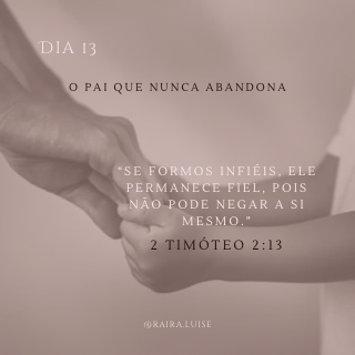 Mas a Bíblia nos lembra que o caráter do Pai é fiel. Mesmo quando somos falhas, Ele permanece. Ele não muda de ideia, não desiste de nós, não nos rejeita. Sua fidelidade não depende do nosso desempenho, mas da Sua natureza. Ele é amor, e amor verdadeiro não abandona.