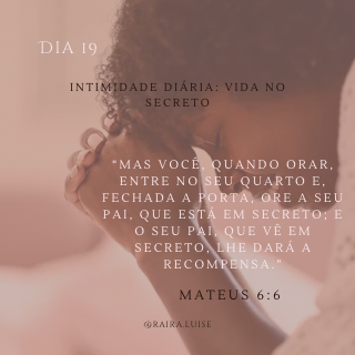 Pai, obrigada porque o Senhor me chama para o secreto. Ajuda-me a buscar a Tua presença todos os dias e a encontrar descanso no Teu amor. Que a intimidade contigo seja o lugar onde minha identidade de filha é fortalecida. Amém.