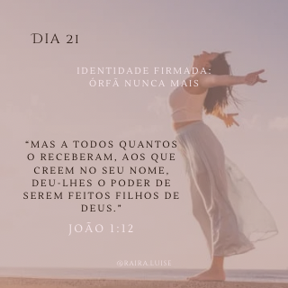 Pai, obrigada porque em Cristo minha identidade está firmada. Eu não sou mais órfã, eu sou filha amada. Que essa verdade me acompanhe todos os dias da minha vida e cale toda mentira que tente me afastar do Teu amor. Amém.