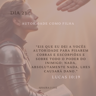 Jesus deixou claro que essa autoridade não vem de nós, mas do poder d’Ele em nós. Não precisamos viver assustadas ou aprisionadas pelo medo. Como herdeiras, temos o direito de nos posicionar contra as mentiras do inimigo e declarar a verdade da Palavra.