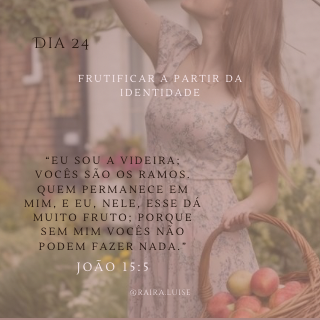 Pai, obrigada porque em Ti eu tenho identidade e propósito. Ensina-me a permanecer em Cristo e a frutificar de forma natural, não para provar quem sou, mas porque já sou Tua filha amada. Que meus frutos revelem o Teu amor ao mundo. Amém.