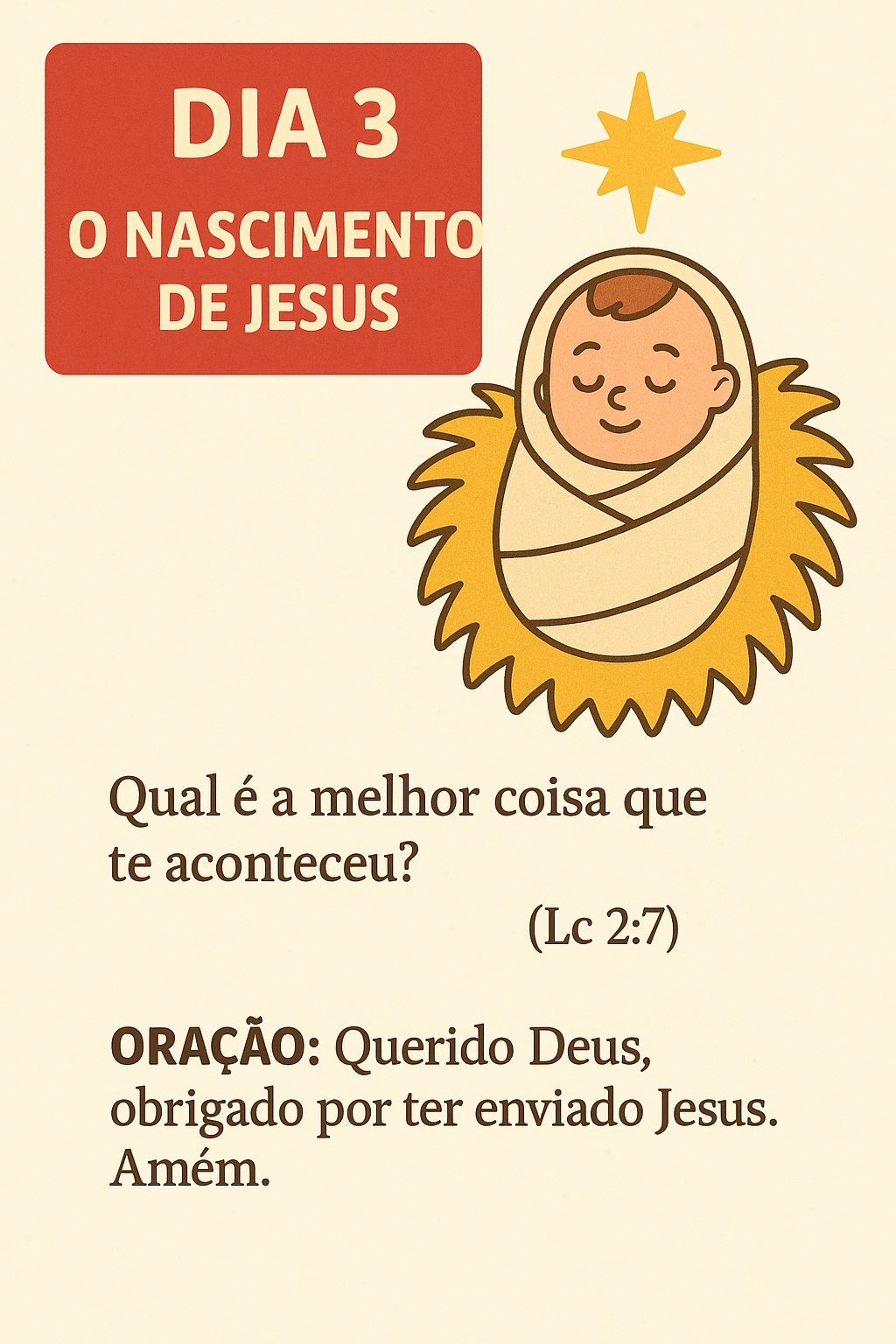 Neste plano de 5 dias, as crianças vão aprender sobre o verdadeiro significado do Natal e como Jesus é o presente que nunca acaba. Cada dia traz uma história simples, um versículo bíblico, uma pergunta para pensar e uma oração curta. É uma forma divertida e inspiradora de conhecer o amor de Deus e começar o novo ano com alegria, fé e gratidão. Ideal para devocionais em família ou na escola bíblica infantil.