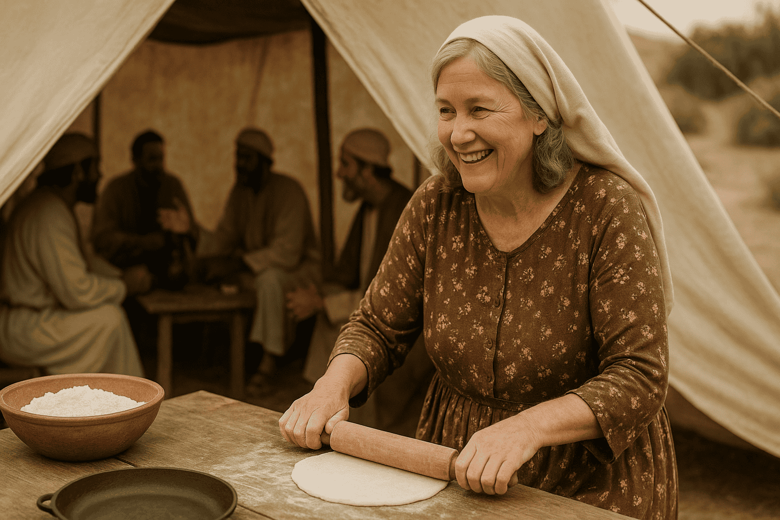 Era uma tarde comum, quando três visitantes se aproximaram da tenda de Abraão. Sara, curiosa, escutava de dentro enquanto preparava a refeição. De repente, ouviu uma frase que fez seu coração estremecer: “Daqui a um ano, sua esposa terá um filho.”