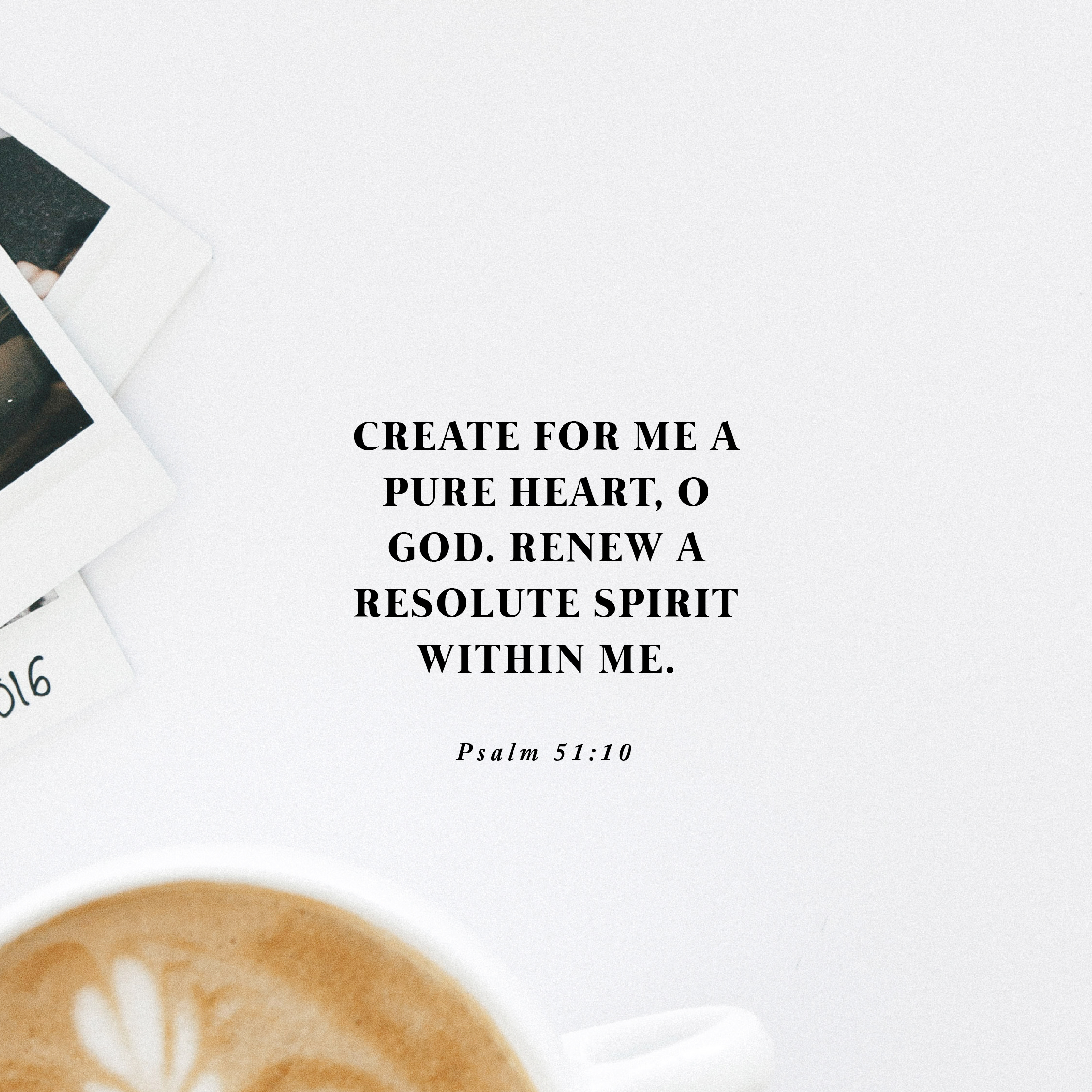 Create for me a pure heart, O God. Renew a resolute spirit within me.