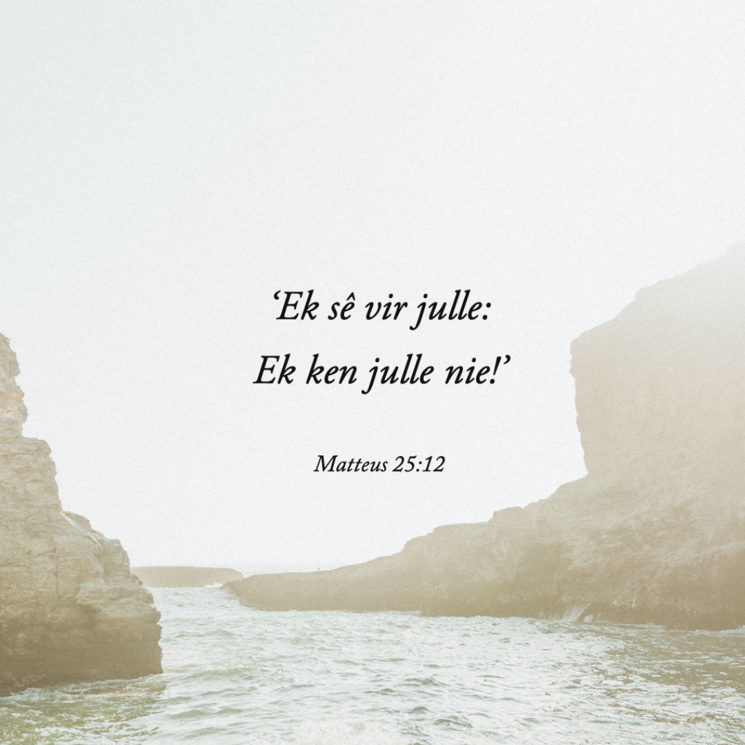 Maar die bruidegom antwoord: Ek sê vir julle: Ek ken julle nie.