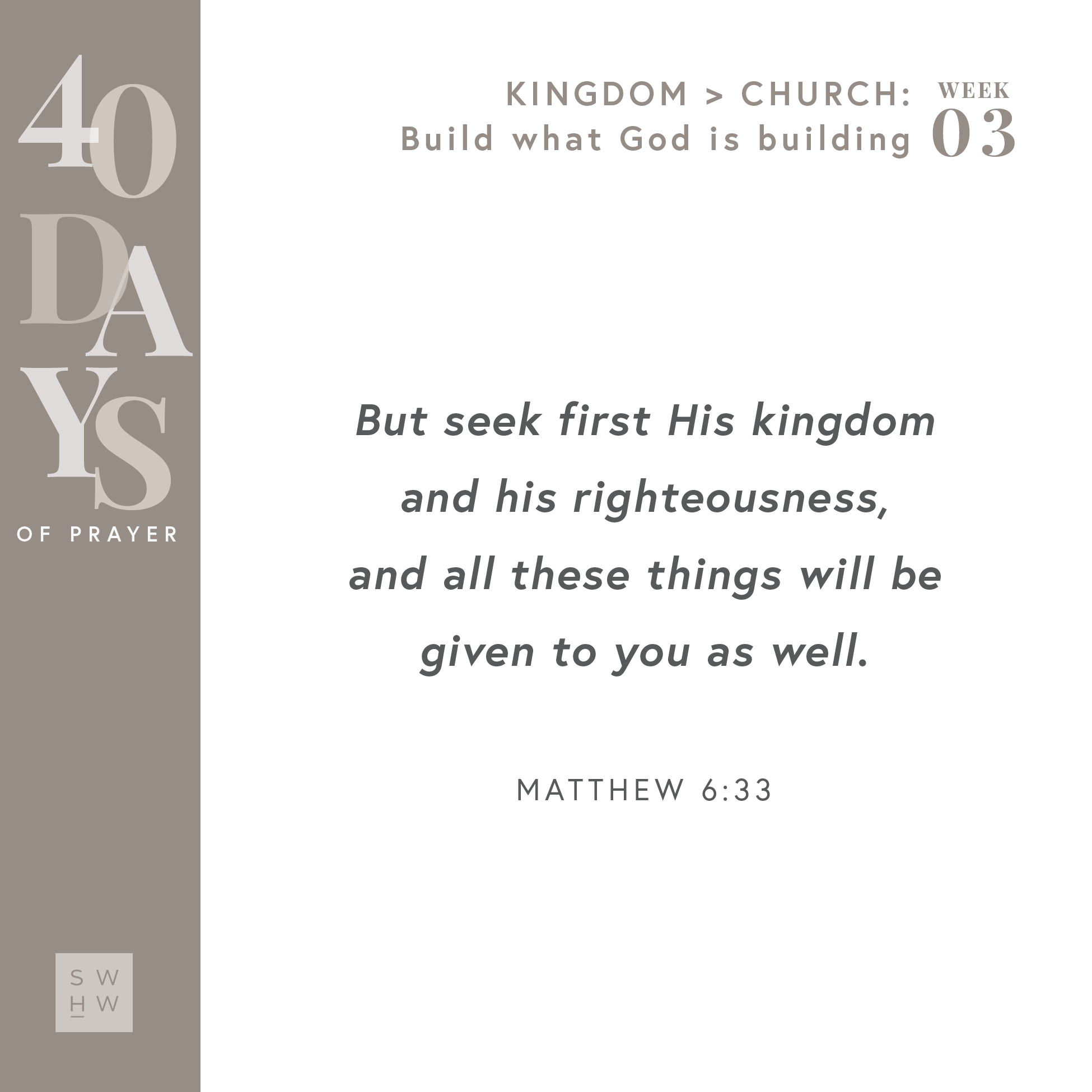 “But seek first His kingdom and his righteousness, and all these things will be given to you as well.” - Matthew 6:33