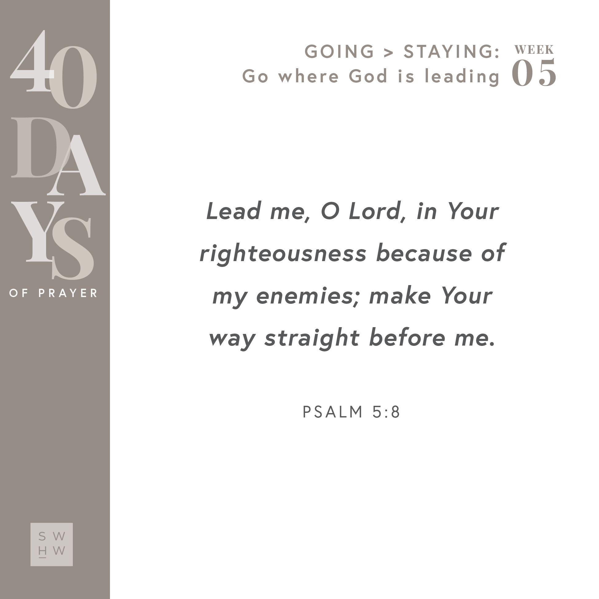 “Lead me, O Lord, in Your righteousness because of my enemies; make Your way straight before me.” - Psalm 5:8