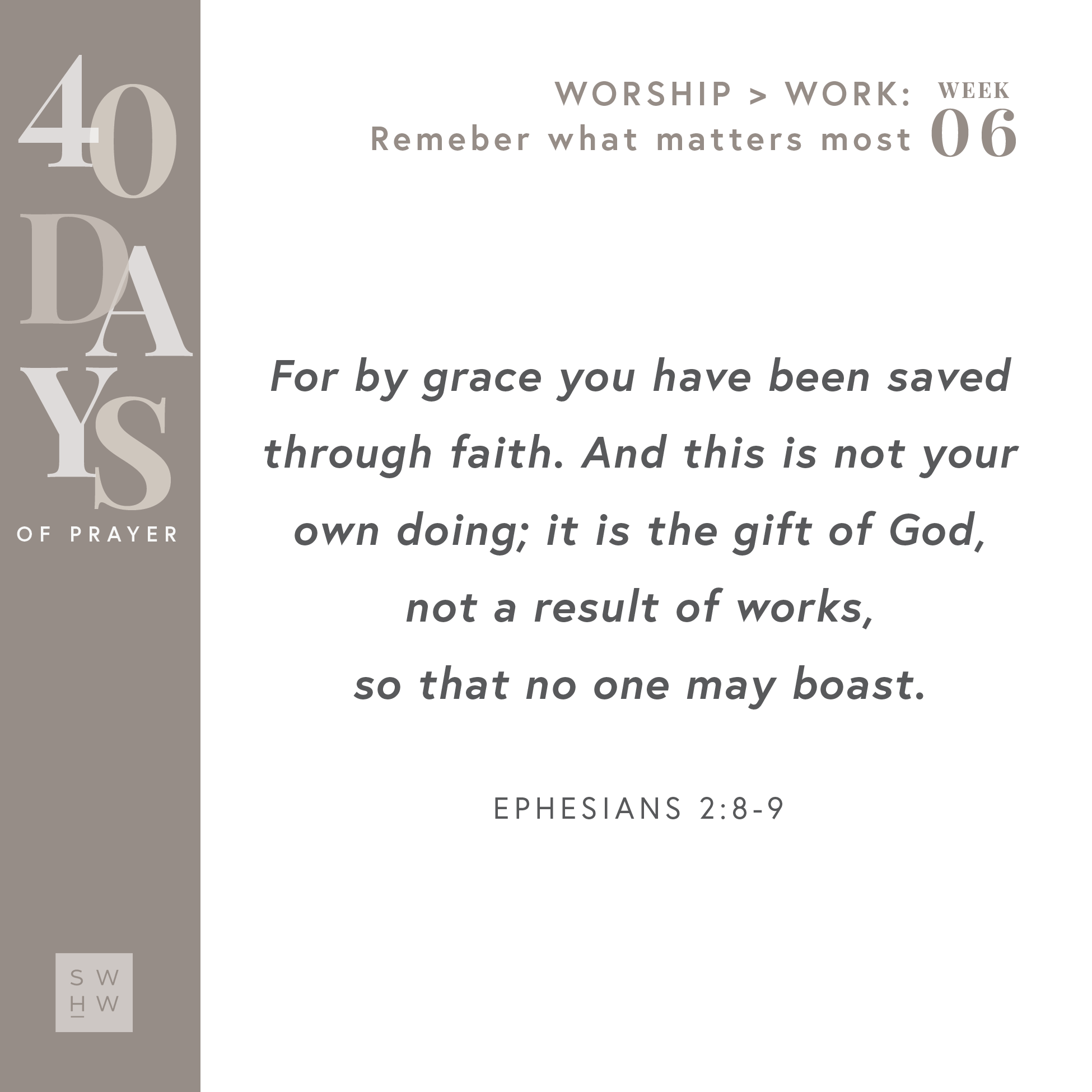 “For by grace you have been saved through faith. And this is not your own doing; it is the gift of God, not a result of works, so that no one may boast.” - Ephesians 2:8-9