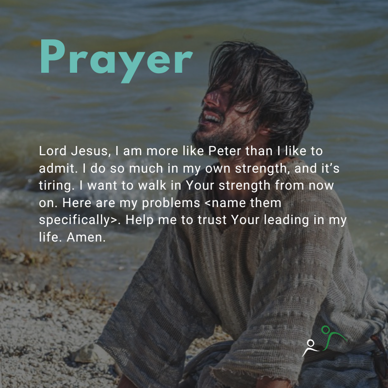 Lord Jesus, I am more like Peter than I like to admit. I do so much in my own strength, and it’s tiring. I want to walk in Your strength from now on. Here are my problems <name them specifically>. Help me to trust Your leading in my life. Amen.