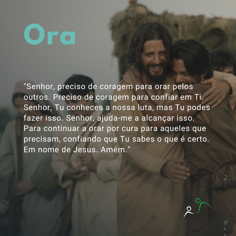 Ora: "Senhor, preciso de coragem para orar pelos outros. Preciso de coragem para confiar em Ti. Senhor, Tu conheces a nossa luta, mas Tu podes fazer isso. Senhor, ajuda-me a alcançar isso. Para continuar a orar por cura para aqueles que precisam, confiando que Tu sabes o que é certo. Em nome de Jesus. Amém."