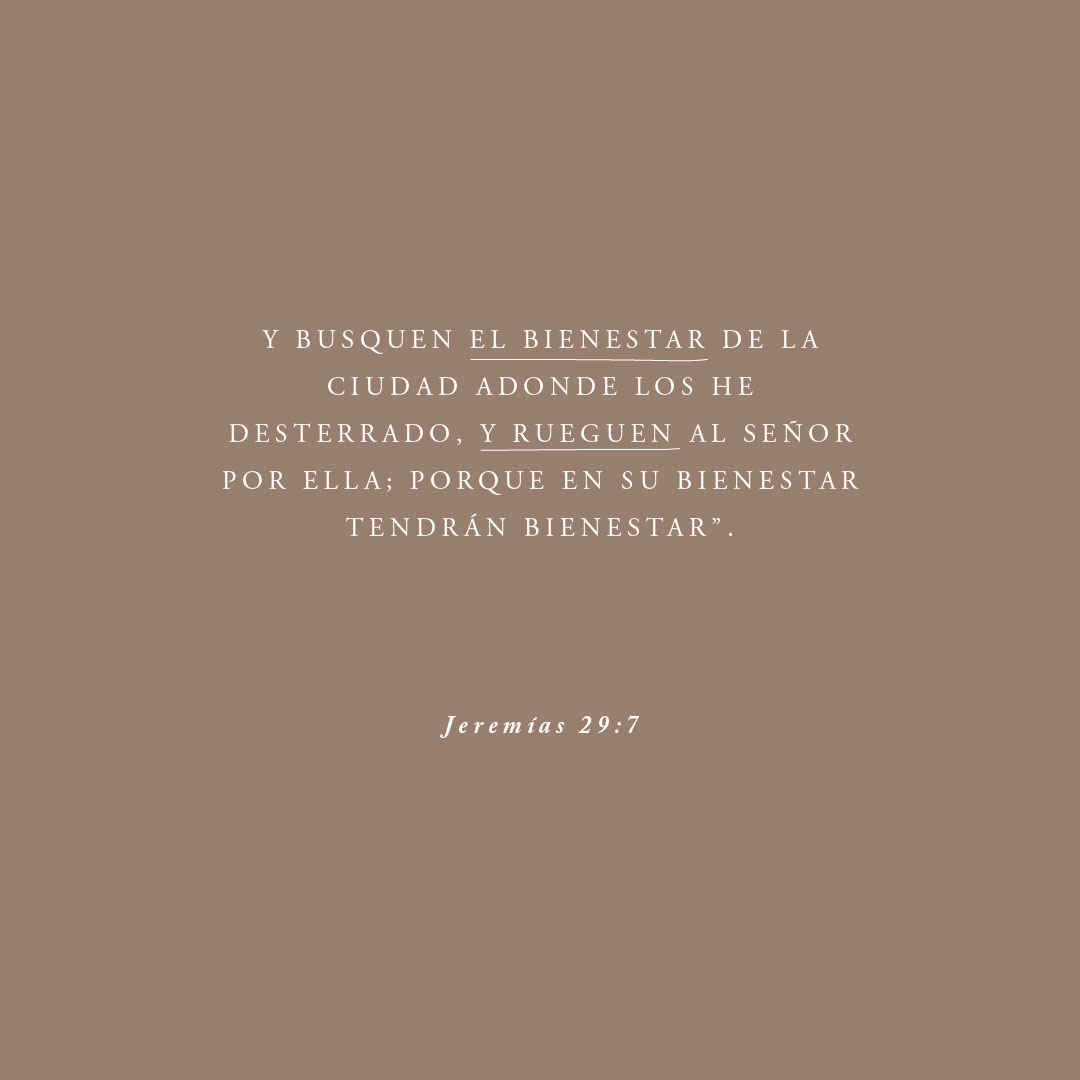 “Procurad la paz de la ciudad a la cual os hice deportar, y rogad por ella al Señor, porque en su paz tendréis vosotros paz".