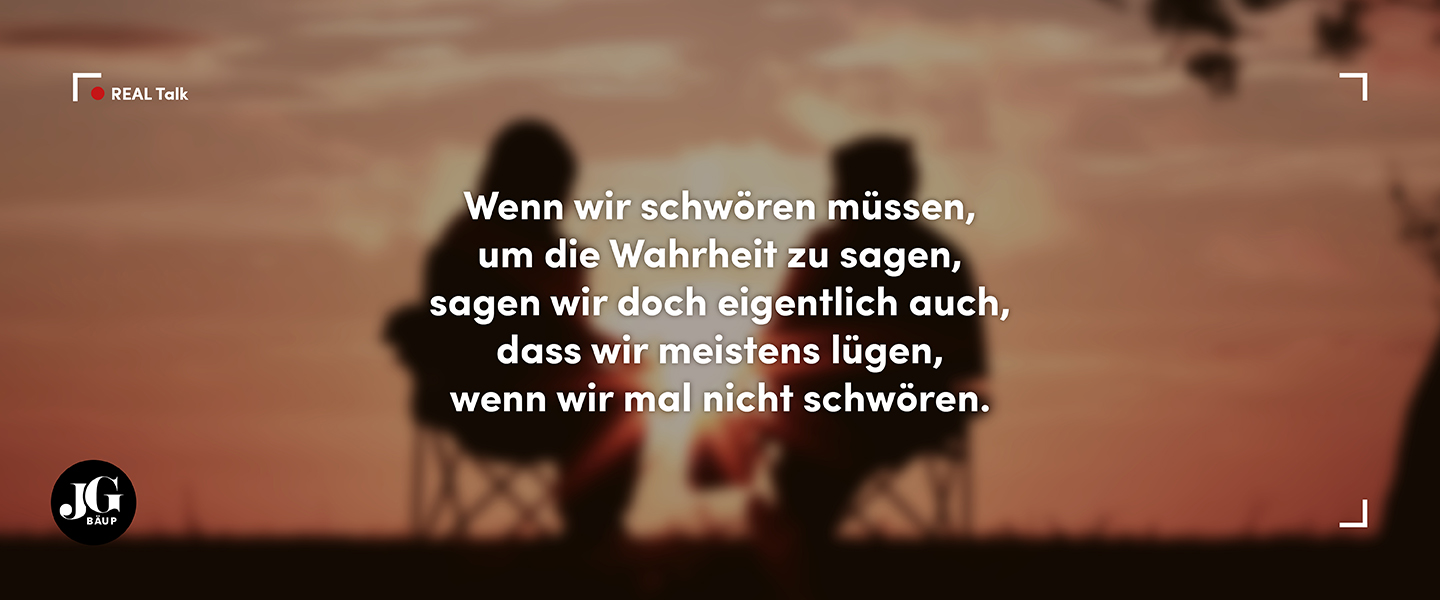 Jesus lehrt uns einen besseren Weg als zu schwören: «Euer Ja sei ein Ja und euer Nein ein Nein. Jedes weitere Wort ist vom Bösen.» Die Bibel lehrt uns in diesem Text kein Schwör- und Eidverbot. Jesus will uns vielmehr lehren, dass ein Christ immer die Wahrheit sagen soll und lügen keine Option ist. Daher ist es gar nicht nötig zu schwören. Unser Reden soll sich mit unserem Handeln decken. Ein Christ soll in seinem einfachen Wort verlässlich sein. Jede weitere Beteuerung ist vom Bösen, also vom Teufel. Dies sind heftige Worte von Jesus und der angesetzte Massstab scheint unüberwindbar. Wie können wir das erfüllen?