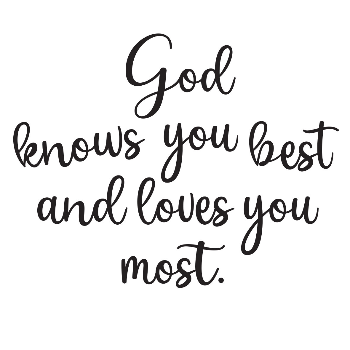 Now think about this: God knows you better than any person ever could because He created you and He sees your most hidden needs and thoughts. He has known you throughout your life, and He loves you more than any human ever could. His love is perfect, unchanging, unconditional, eternal.