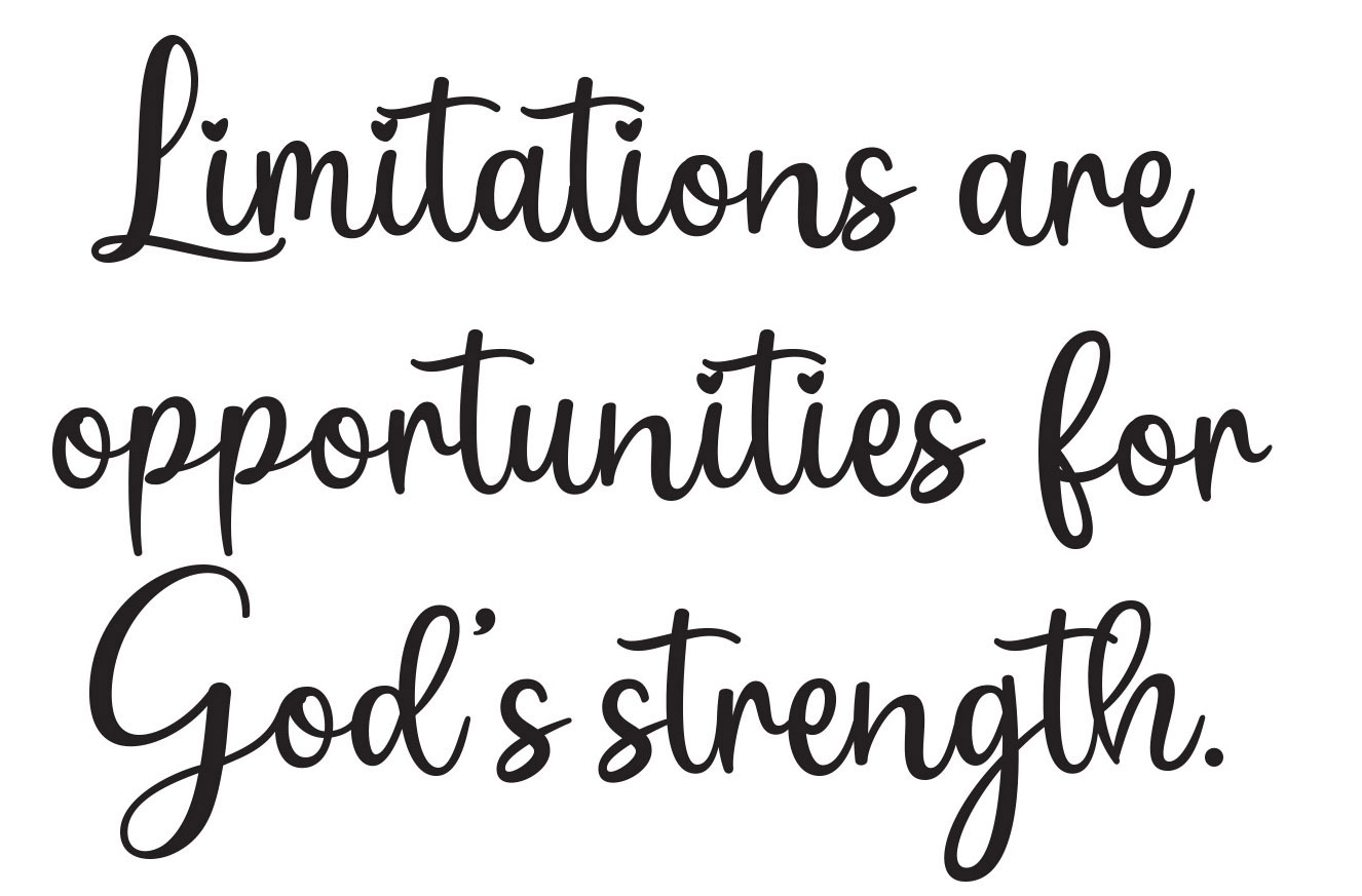 Remember that it is God who calls you to these tasks, and He helps you carry them out. As you trust in God and let Him meet your needs, your limitations become opportunities for His strength to shine.