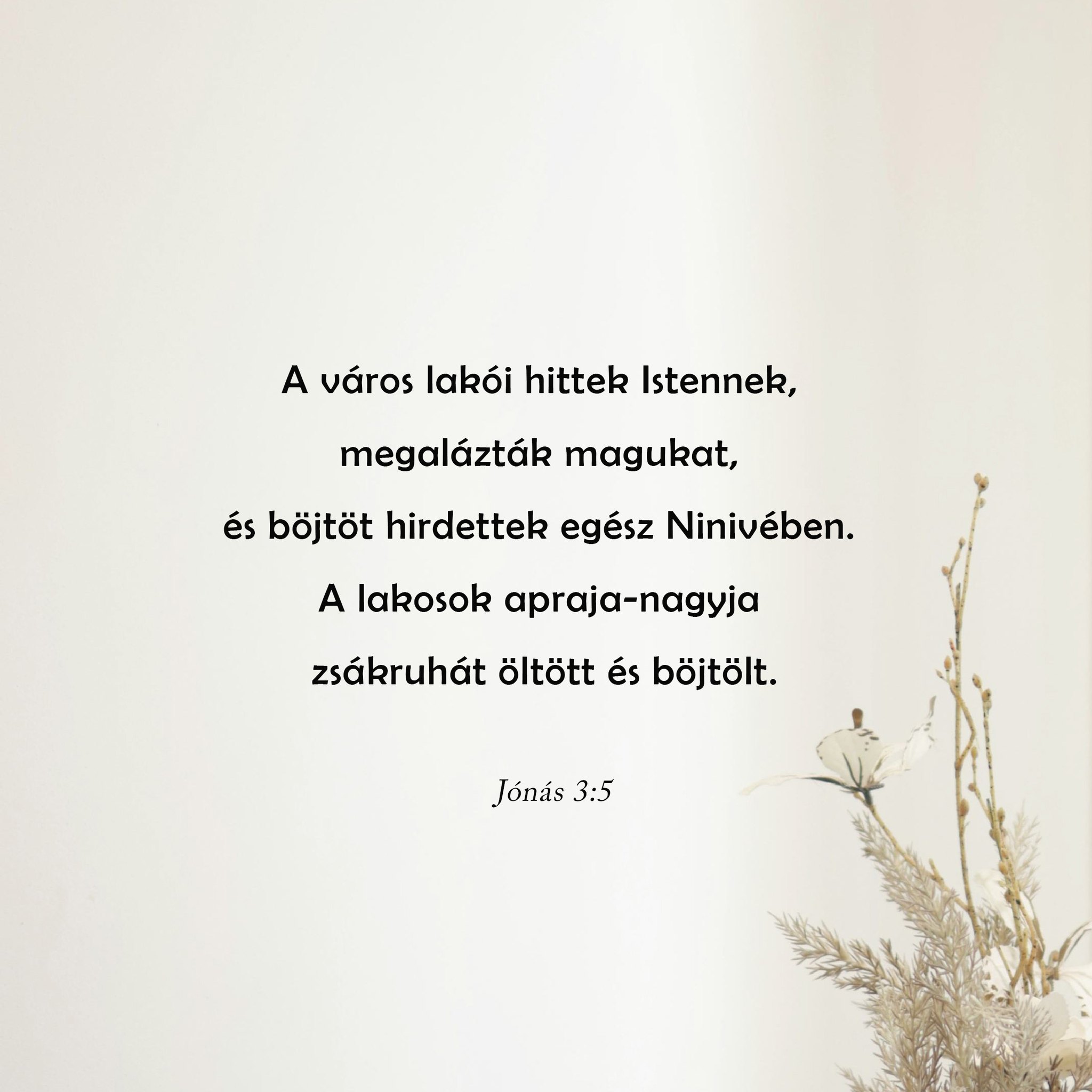 „A város lakói hittek Istennek, megalázták magukat, és böjtöt hirdettek egész Ninivében. A lakosok apraja-nagyja zsákruhát öltött és böjtölt.”