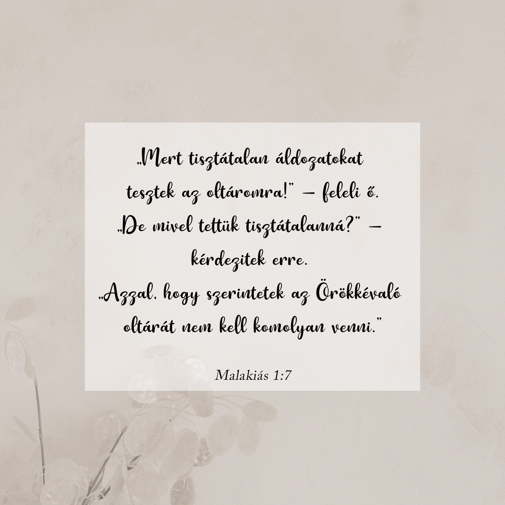 „Mert tisztátalan áldozatokat tesztek az oltáromra!” – feleli Ő. „De mivel tettük tisztátalanná” – kérdezitek erre. „Azzal, hogy szerintetek az Örökkévaló oltárát nem kell komolyan venni.”