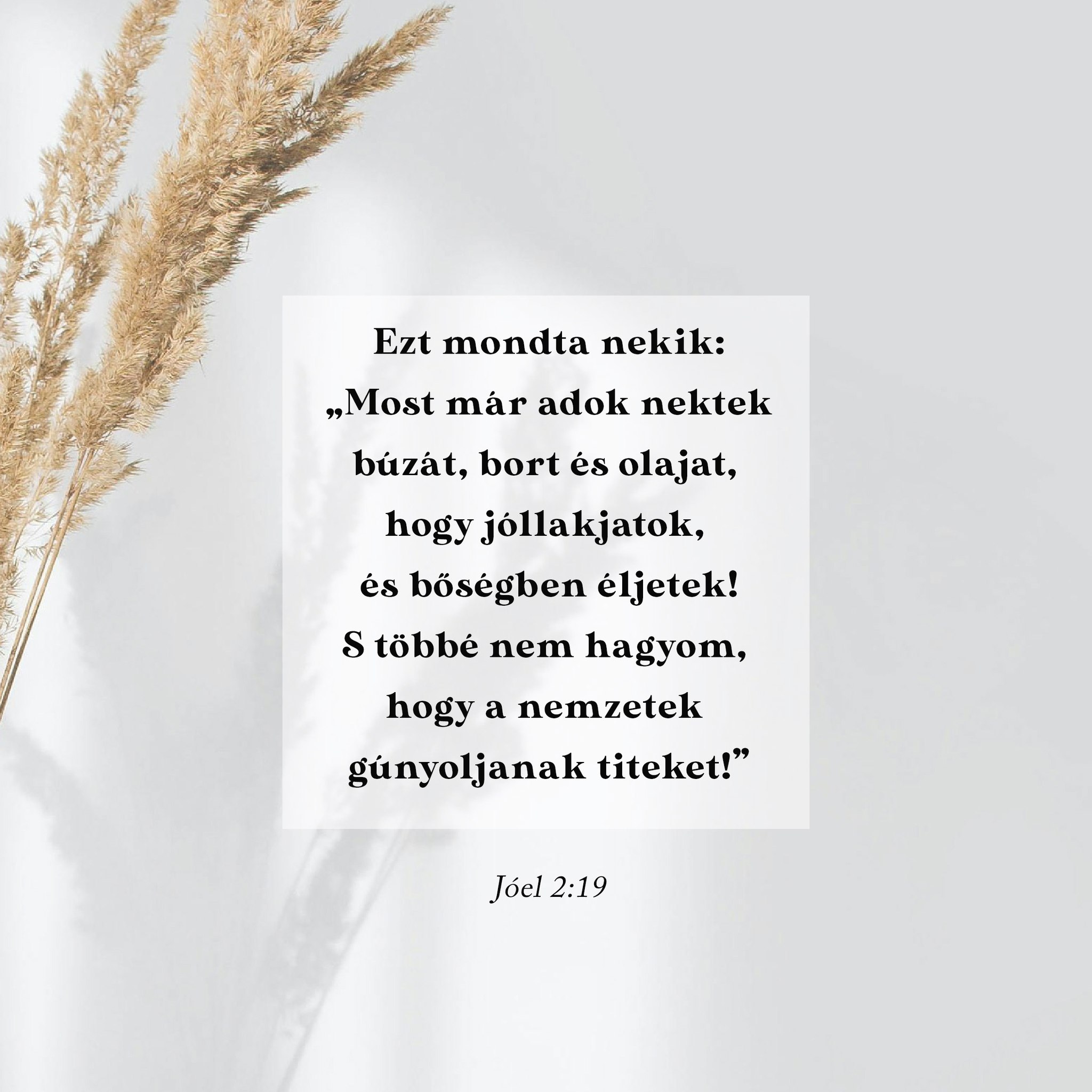 „Ezt mondta nekik: >>Most már adok nektek búzát, bort és olajat, hogy jóllakjatok, és bőségben éljetek! S többé nem hagyom, hogy a nemzetek gúnyoljanak titeket.<<”