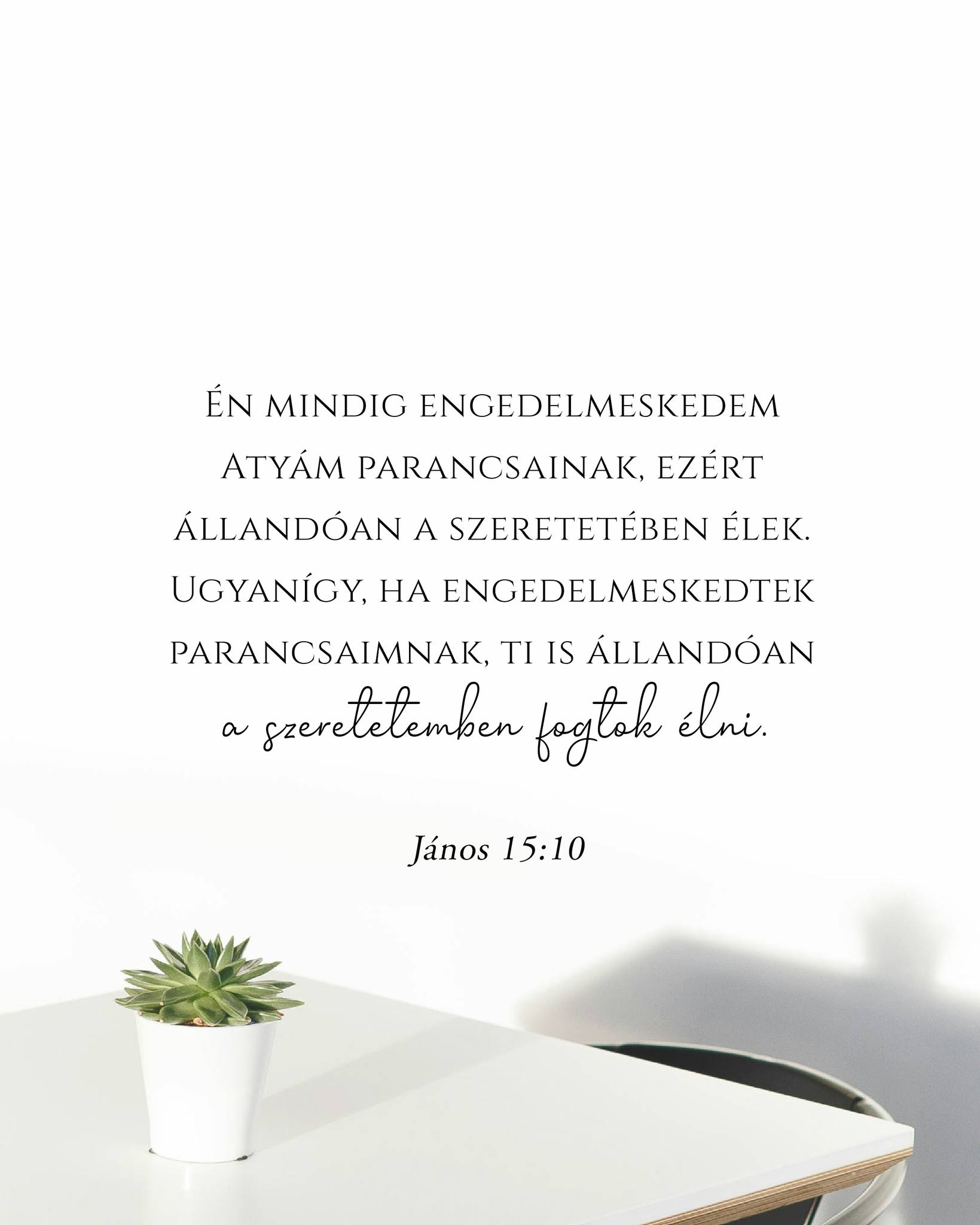 „Én mindig engedelmeskedem Atyám parancsainak, ezért állandóan a szeretetében élek. Ugyanígy, ha engedelmeskedtek parancsaimnak, ti is állandóan a szeretetemben fogtok élni.”