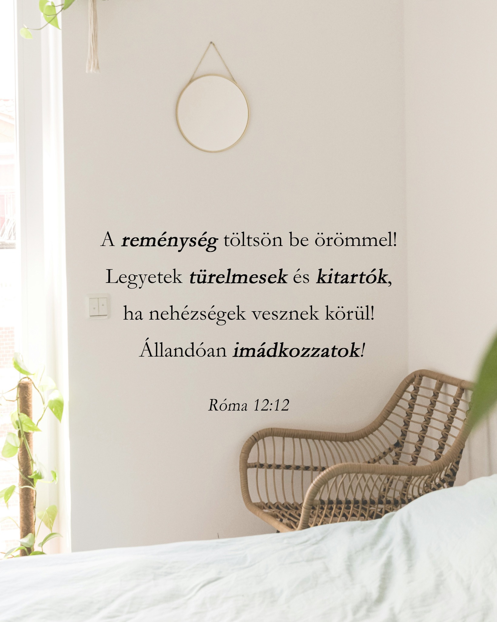 Pál arra is bátorít minket, hogy „örüljünk a reménységben, viseljük el a szenvedést, és tartsunk ki az imádságban.” A Krisztusban való gyökerezés erőt ad nekünk, hogy örüljünk akkor is, amikor a dolgok nehezek, hogy kitartsunk, amikor fáradtnak érezzük magunkat, és hogy reményteljes szívvel imádkozzunk tovább. Azért tesszük mindezt, mert egy olyan Megváltóban gyökerezünk, aki mindezeken keresztül megtart minket.