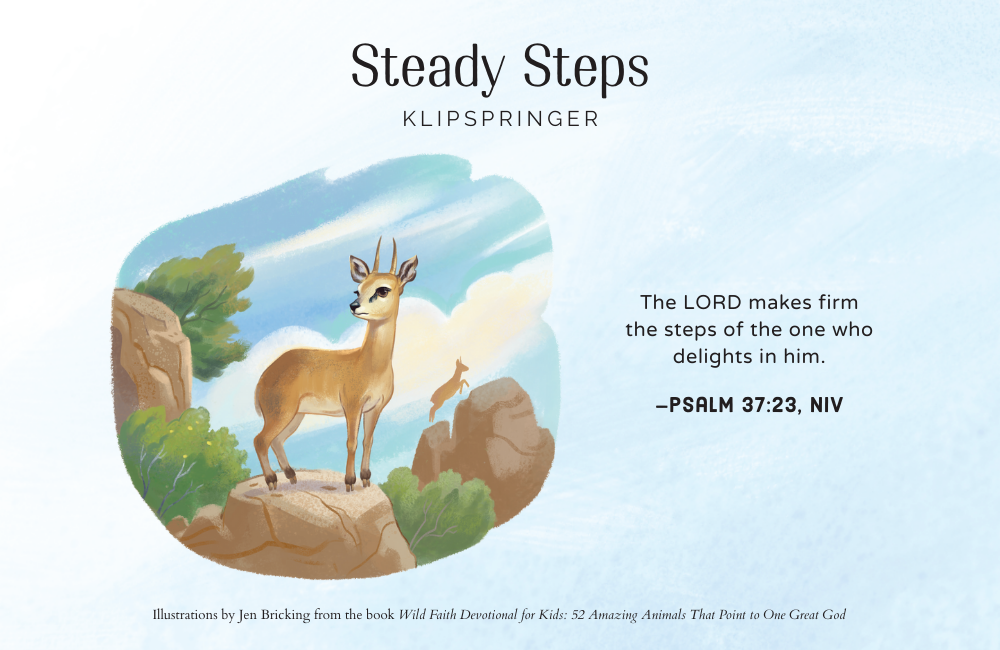 When life gets rocky and rough, we can trust God and the guidance we find in the Bible. God cares for us and knows how life works best. He can give us peace and steady us through the most challenging circumstances. God can make us sure-footed like the klipspringer!