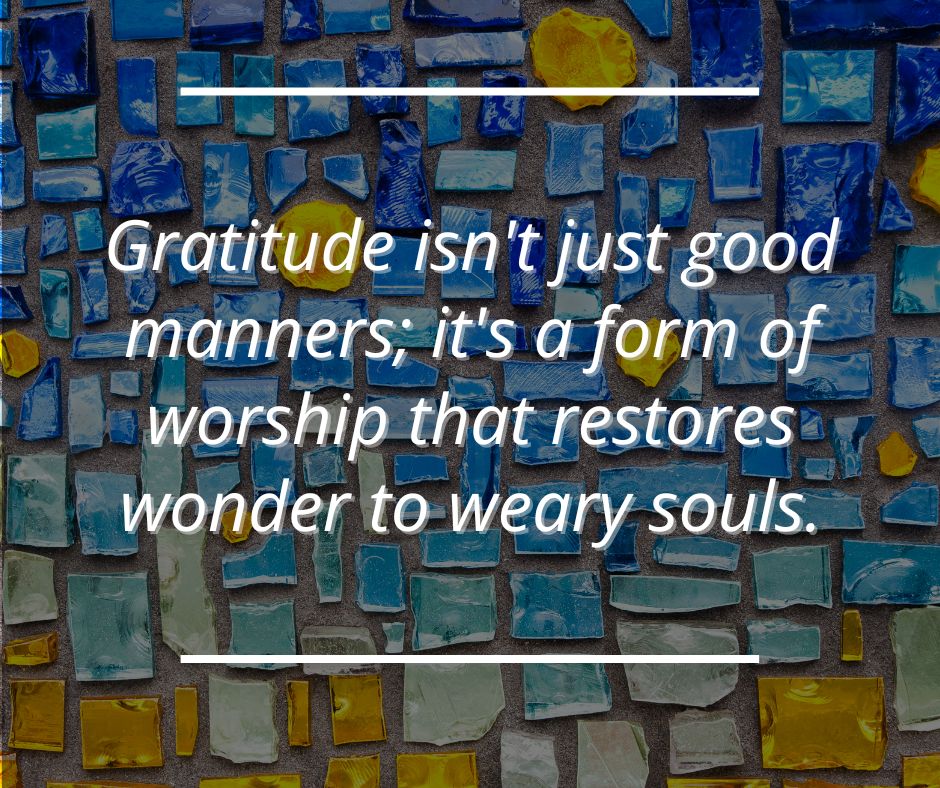 Gratitude isn't just good manners; it's a form of worship that restores wonder to weary souls. If you need strength in an exhausting season, don’t overlook gratitude!