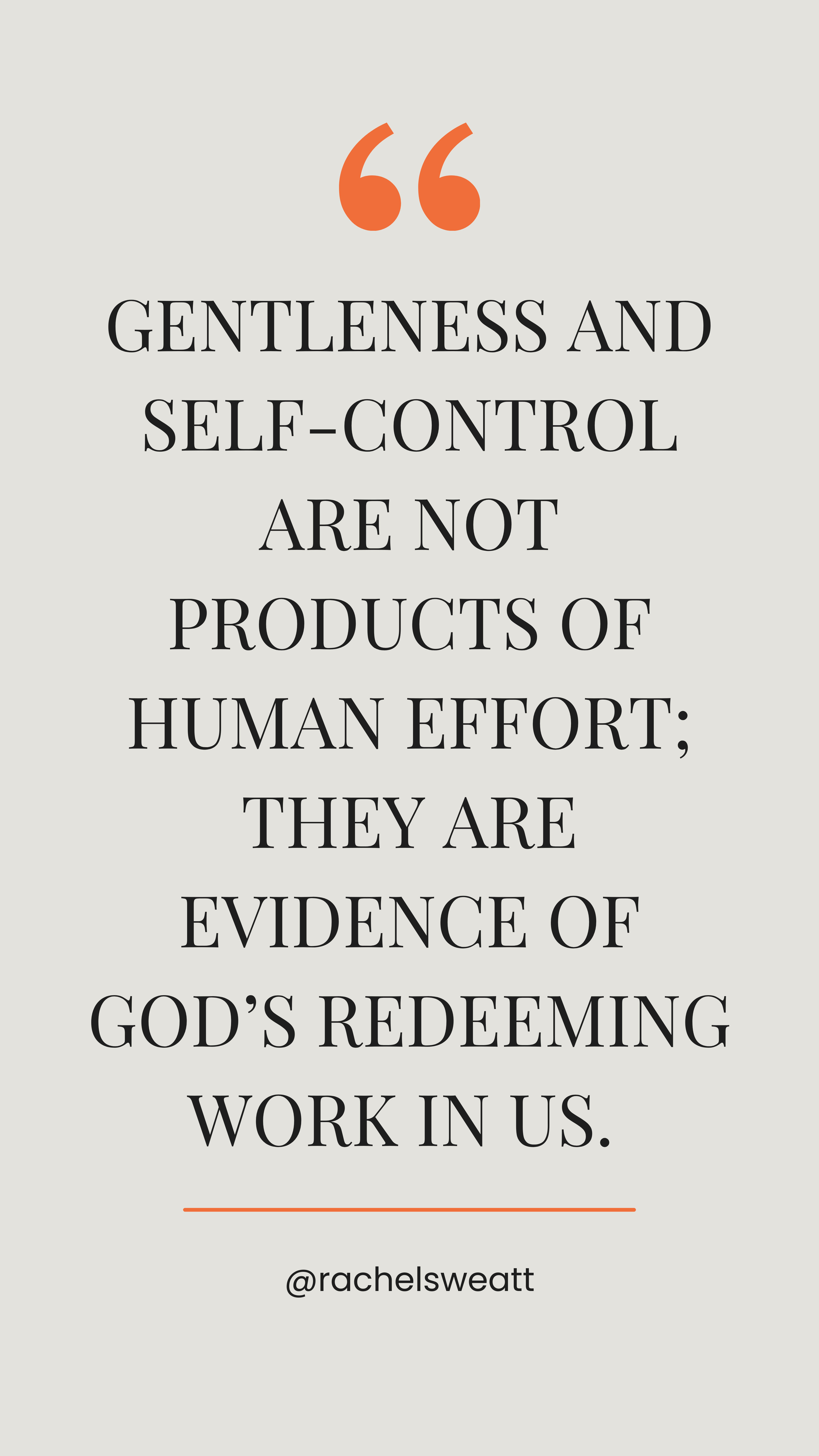 Gentleness and self-control are not products of human effort; they are evidence of God’s redeeming work in us. They are the fruit of the Spirit, bearing blessings in our lives and overflowing onto those around us. They reflect both the grace we’ve received and the stewardship entrusted to us.